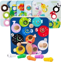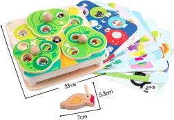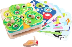 Gudra koka magnētiskā spēle no Tooky Toy apvieno izklaidi un mācīšanos vienā. Bērni ar koka putniņu ķer magnētiskos tārpiņus, groza koka “lapas” un pilda uzdevumus uz maināmajām kartītēm. Spēle attīsta sīko motoriku, acu un roku koordināciju, krāsu, formu un skaitļu atpazīšanu, kā arī piedāvā drošu koka apdari ar gludām malām.