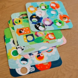 Krāsainas plāksnes ar skaitļiem, krāsām, formām un dzīvniekiem paplašina spēles scenārijus. Tās veicina agrīno matemātisko pratību un krāsu un formu atpazīšanu.