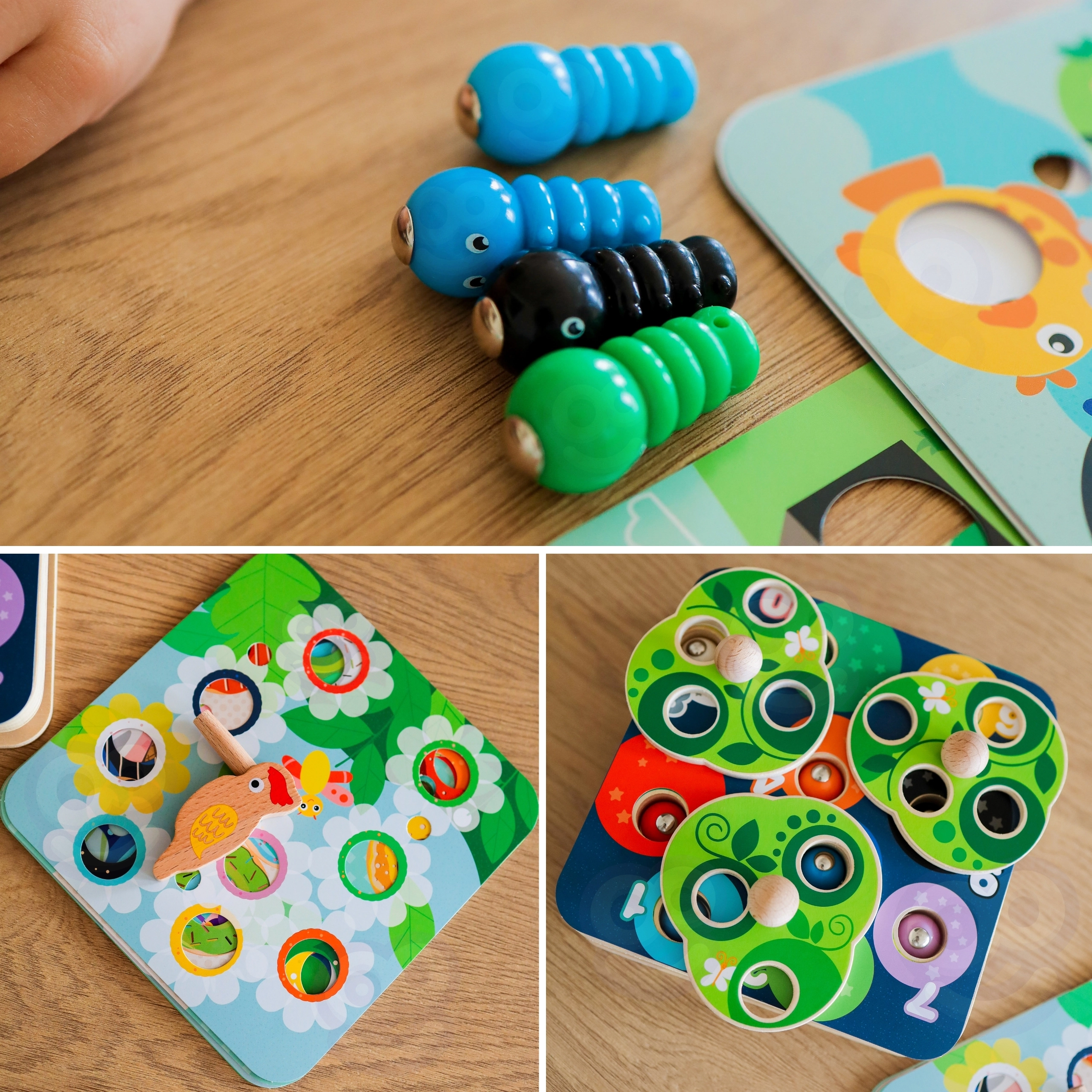 - magnētiskā tārpiņu ķeršana; pagriežamas lapas; maināmas izglītojošās plāksnes