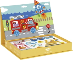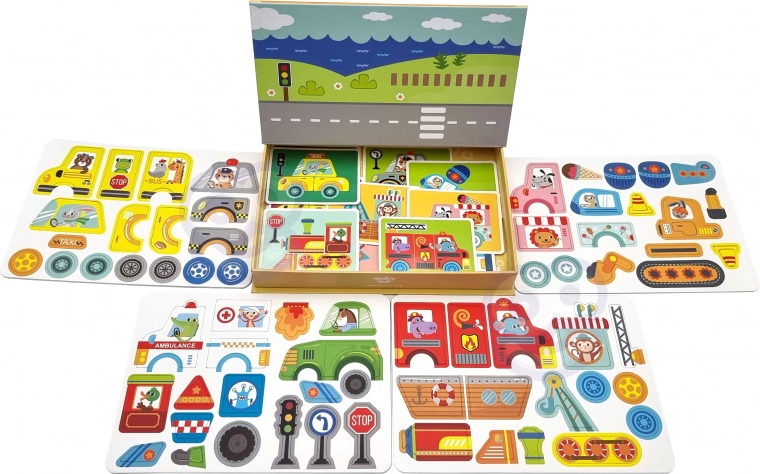 Šī magnētiskā puzle gudrā kastē slēpj izbīdāmu magnētisko tāfeli tieši vākā. Bērni var ar krāsainām magnētiskām detaļām veidot dzīvniekus un citus motīvus uz sagatavotām kartītēm vai radīt pašiem savus attēlus. Spēle attīsta radošumu, koncentrēšanos un roku–acs koordināciju.