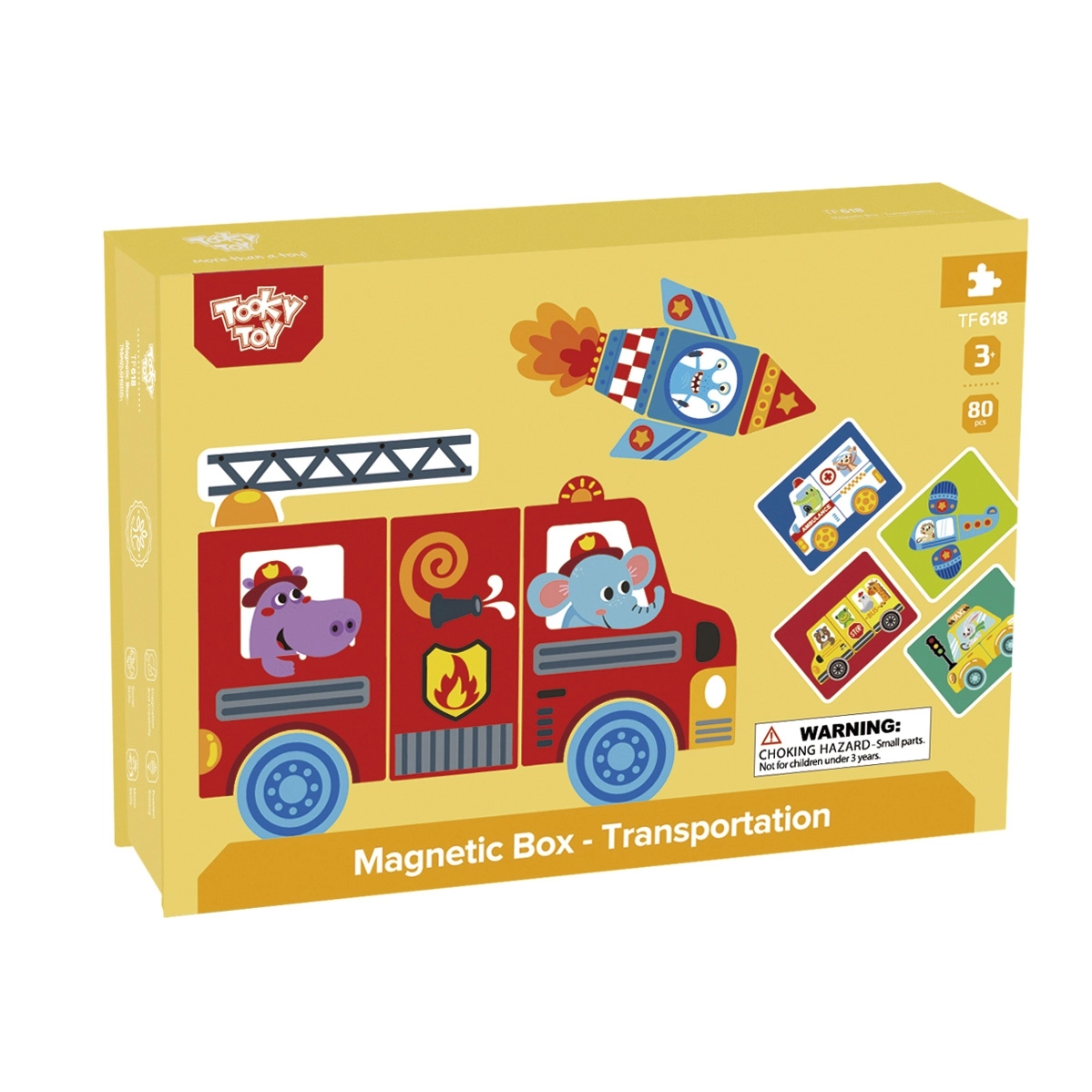 Krāsaina magnētiskā puzle ērtā kastē no TOOKY TOY piedāvā 80 detaļas attēlu veidošanai uz magnētiskās tāfeles. Bērni izbaudīs daudz izklaides un vienlaikus attīstīs loģisko domāšanu, asprātību un sīko motoriku. Kompaktais izpildījums ir ideāls ceļojumiem, bet ekoloģiski materiāli nodrošina drošu un mierīgu spēli.