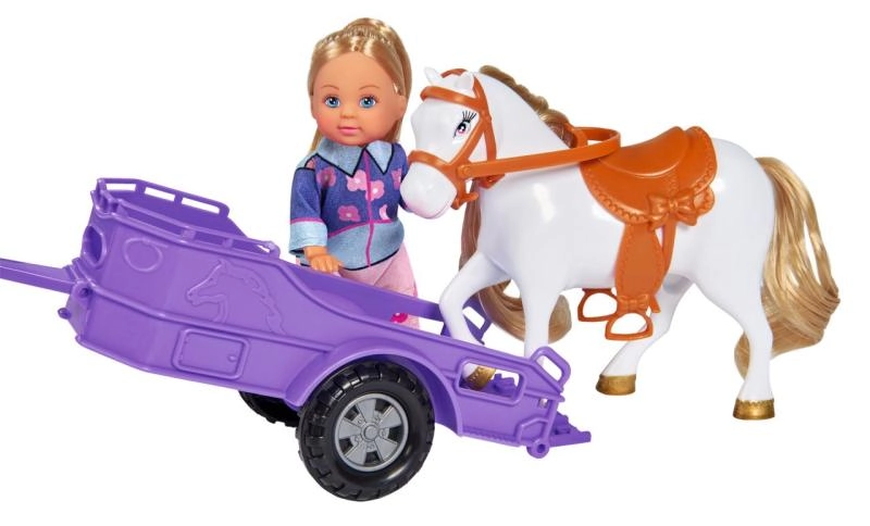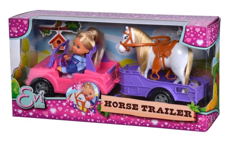 Šis komplekts bērniem sniedz visu nepieciešamo viņu jāšanas piedzīvojumiem. Leļļa Evi Love vada stilīgu rozā kabrioletu, kuram pievienota violeta piekabe ērtai zirdziņa pārvadāšanai. Pateicoties griežamajiem riteņiem un noņemamai piekabei, spēle ir plūstoša un aizraujoša gan mājās, gan ceļā.