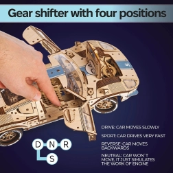 Ugears Endurance Racer ir divdurvju sporta kupeja, kas radīta auto entuziastiem. Modelis lepojas ar reālistiskiem sacīkšu elementiem, piemēram, pārnesumu sviru ar režīmiem uz priekšu, atpakaļ un sport — papildu paātrinājumam. Silikona riepas nodrošina izcilu saķeri un stabilitāti.