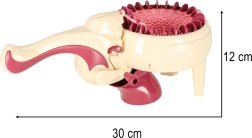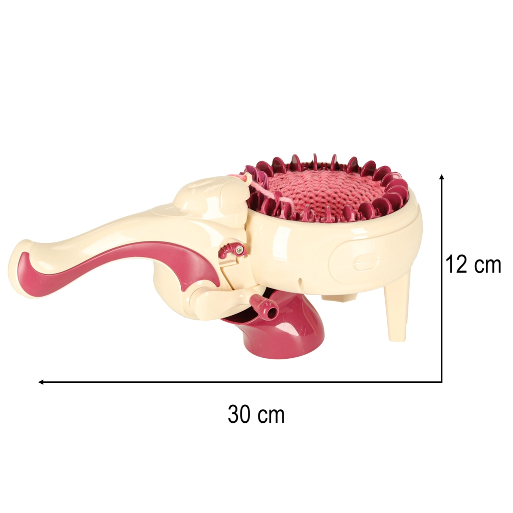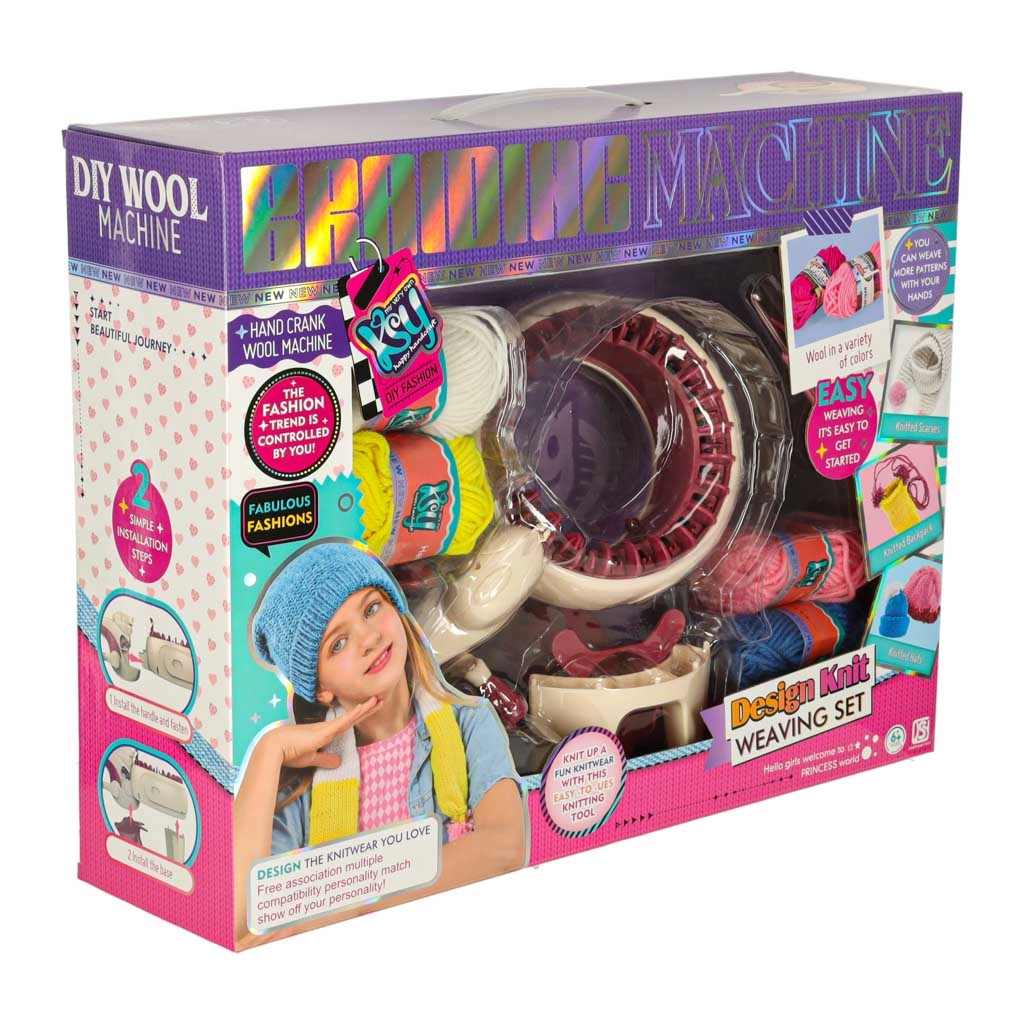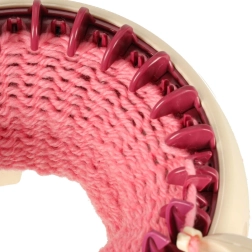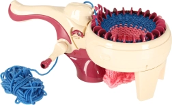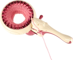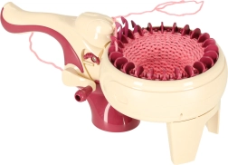 Ar integrēto adīšanas mašīnu jūs varat ērti adīt dažādus projektus – no šallēm līdz cepurēm. Komplektā ir viss nepieciešamais: 1 adīšanas mašīna, stabilizējoša pamatne, adata un āķis. Džiju krāsu palete ietver dzeltenu, zilu, baltu, violetu un rozā, kas ļauj veidot plašu kombināciju un dizainu klāstu.