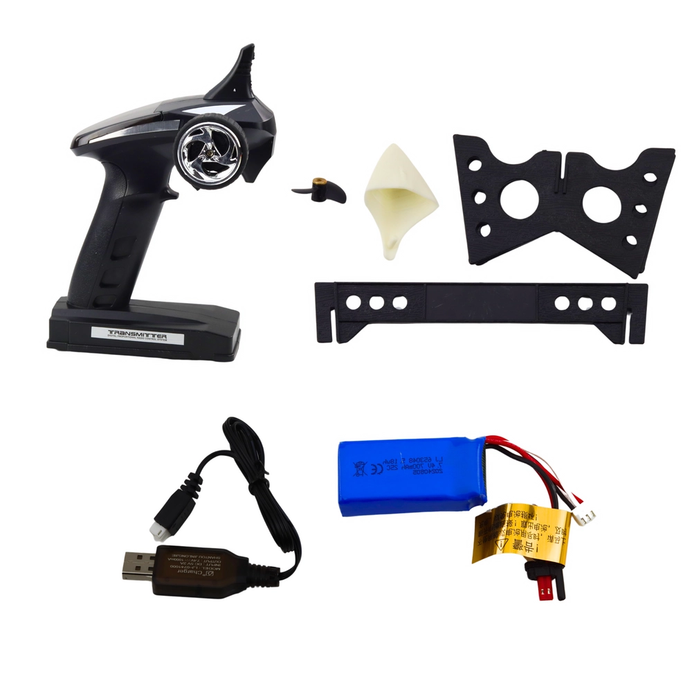2.4GHz tālvadības sistēma ļauj precīzi manevrēt bez traucējumiem, pat citu modeļu klātbūtnē. Pults darbības rādiuss ļauj brīvi izklaidēties uz lielākām ūdenstilpēm, bet komplektā iekļautais speciālais statīvs nodrošina drošu laivas novietošanu pēc brauciena.