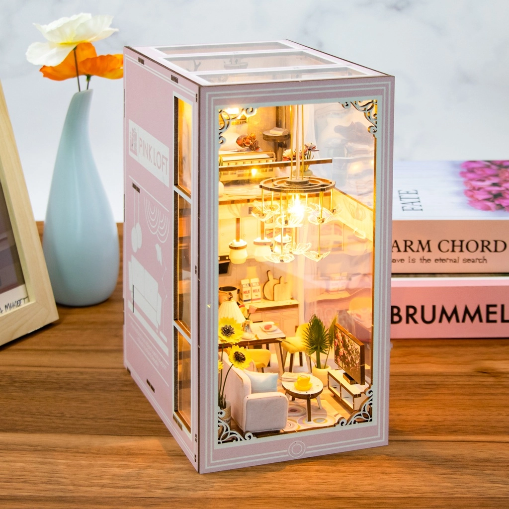 Atklājiet miniapjomu un detaļu burvību ar komplektu Grāmatu balsts Rozā mezonets! Izveidojiet savu stilīgu stūrīti ar šiem unikālajiem elementiem, kas piedāvā detalizētu izpildījumu un attīsta motoriku, iztēli un pacietību. Iekļauts LED apgaismojums, kas piešķir jūsu radījumam īpašu šarmu.