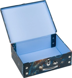 Koferītim ir pastiprināti stūri, kas nodrošina drošu lietošanu bez bojājumu riska. Tas ir ideāls skolas piederumu, rotaļlietu vai citu sīklietu glabāšanai, kurām nepieciešama droša vieta. Klasiska sprādzes aizdare un metāla rokturis nodrošina vieglu un ērtu nēsāšanu.