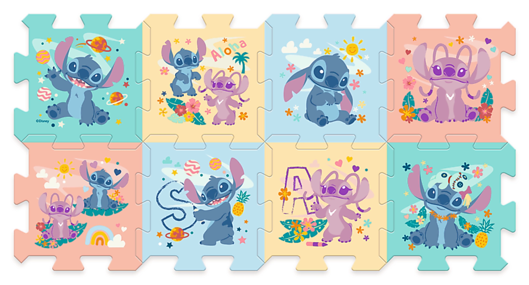 Putu puzles var izmantot arī kā rotaļu paklājiņu, nodrošinot mīkstu un drošu virsmu rotaļām pat pašiem mazākajiem. Izbaudiet rotaļīgu un izglītojošu jautrību ar iemīļoto varoņu Lilo & Stitch motīvu.