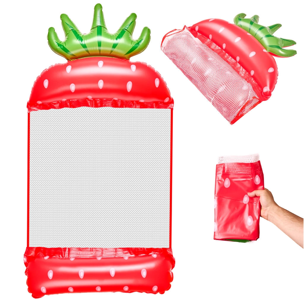 Izbaudiet vasaras piedzīvojumus ar šo stilīgo uzpūšamo ūdens šūpuļtīklu zemeņu formā. Ideāli piemērots atpūtai pie baseina, viegli pārnēsājams un ērti lietojams. Viegls dizains un košas krāsas garantē jautrību uz ūdens.