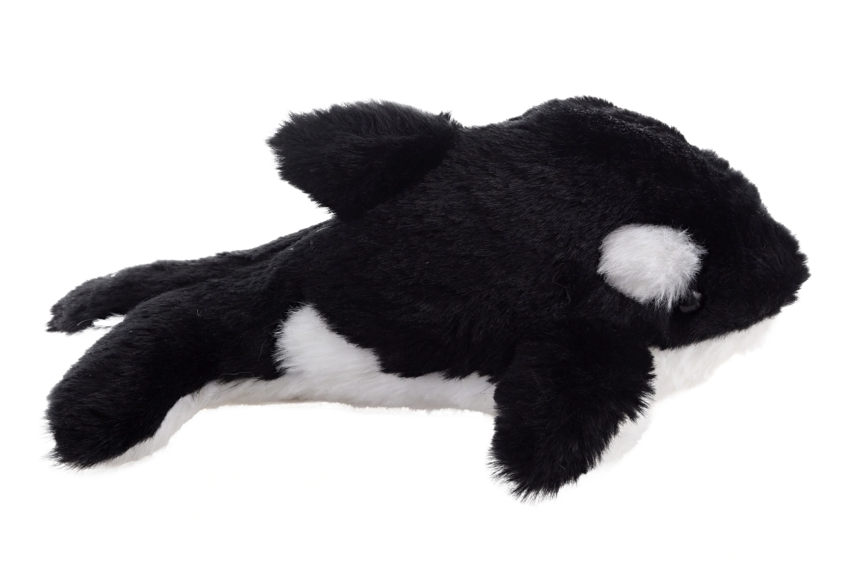 Šīs mīkstās rotaļlietas dizains uzticami atdarina īstu orku, tostarp raksturīgos melnbaltos plankumus.