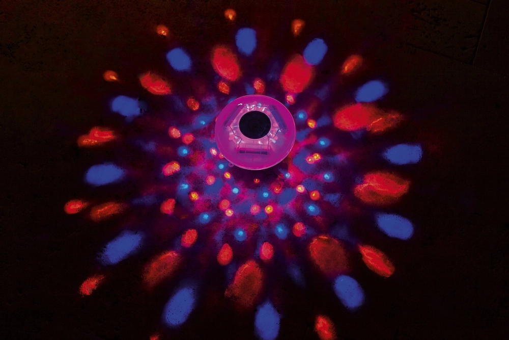 Šī modernā LED lampa ir vienkārši lietojama: ievietojiet trīs AA baterijas (nav iekļautas komplektā), novietojiet lampu uz ūdens virsmas un nospiediet pogu augšpusē. Nav nepieciešami vadi vai pieslēgums elektrotīklam. Izstrādāta, lai maigi apgaismotu ūdens virsmu 2,43 m platumā un 1,52 m dziļumā. Automātiski izslēdzas pēc stundas bezdarbības.