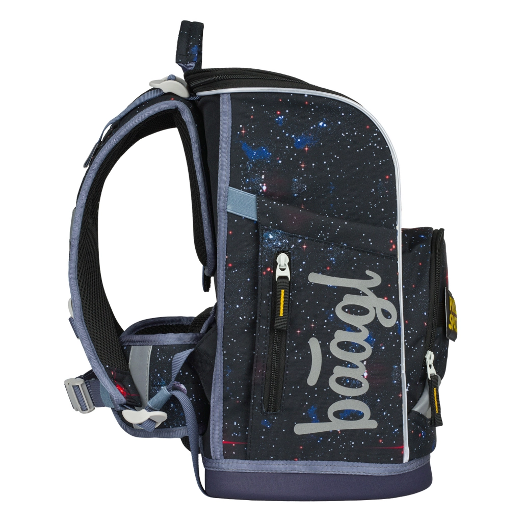 Šis skolas komplekts no zīmola BAAGL ar Pixel Space dizainu ietver ergonomisku aktovku Zippy Plus, vienstāva penāli un praktisku maisiņu ar kabatu. Tas ir ideāli piemērots bērniem no 1. klases, pateicoties vieglumam un regulējamībai katrā elementā.
