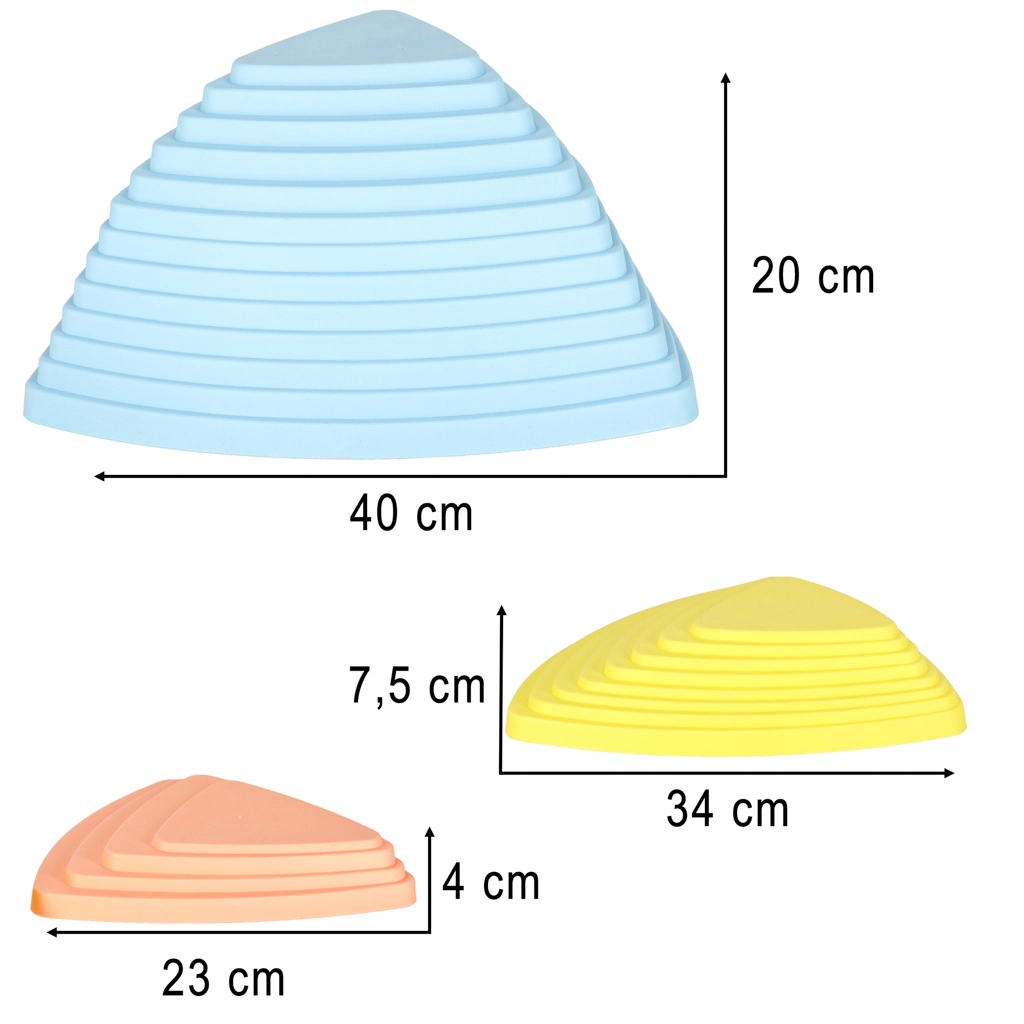 Līdzsvara akmeņi nodrošina drošu un elastīgu telpu spēlei gan mājās, gan bērnudārzos vai terapeitiskās telpās. Saskaņā ar Montessori pieeju šie dažāda augstuma ģeometriskie akmeņi māca bērniem plānot kustības, noturēt līdzsvaru un koncentrēties.