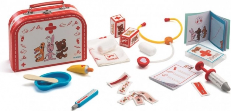 DJECO ārsta koferītis ir ideāla rotaļlieta bērniem, kuri vēlas kļūt par mazajiem ārstiem. Šis komplekts veicina radošu spēli, sociālo prasmju attīstību un empātiju. Tas ietver dažādus medicīniskos instrumentus, piemēram, stetoskopu, termometru un daudz ko citu.