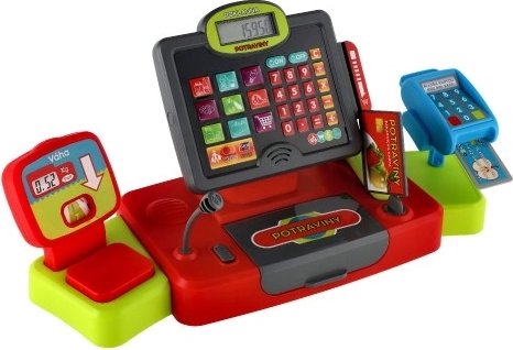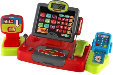 Liels bērnu kases aparāts pārvērtīs jebkuru stūrīti par mazu veikalu. Tas piedāvā gaismas un skaņas efektus, darbojošos kalkulatoru, karšu lasītāju un svarus augļiem un dārzeņiem. Komplektā ir banknošu, monētu un pārtikas maketi. Barošana ar 2× AA baterijām (nav iekļautas). Piemērots no 3 gadu vecuma.