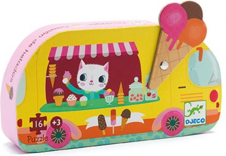Atklājiet bērnu puzli DJECO Saldējums brauc, kas ir ideāli piemērota mazajiem izzinātājiem, kuri mīl gan spēlēties, gan mācīties. Šī 16 gabalu puzle piedāvā: