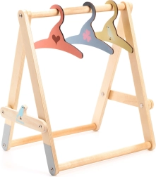 Šis skaistais koka pakaramais ir ne tikai funkcionāls, bet arī vizuāli pievilcīgs, padarot to par lielisku akcentu jebkurā bērna istabā. Komplektā ir vairāki pleciņi, kas palīdz uzturēt leļļu drēbes kārtībā un gatavas jebkurai situācijai. Ar šo komplektu jūsu bērni uzlabos savu kārtības ievērošanu un rūpes par iemīļoto leļļu apģērbu.