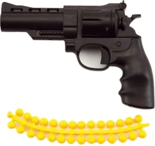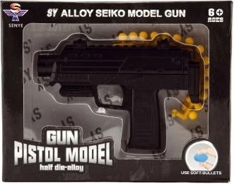 Pistole izmanto mīkstas bumbiņas drošai lietošanai, ideāli piemērota bērniem.
