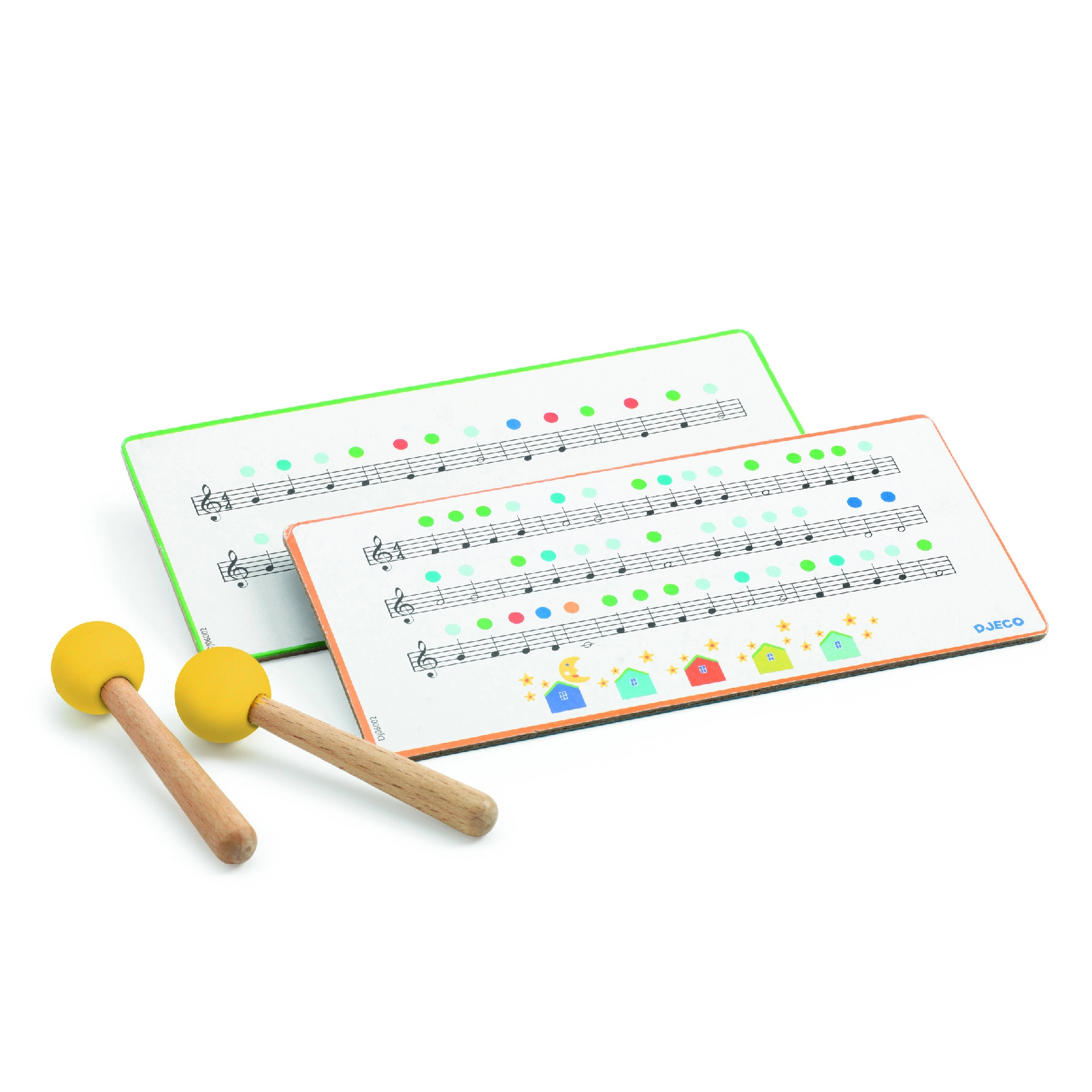 Numurētas mēlītes un iekļautie vālīšu pāri ļauj bērniem uzreiz spēlēt patīkamas melodijas bez iepriekšējas pieredzes.