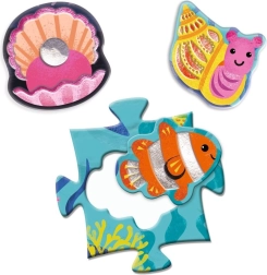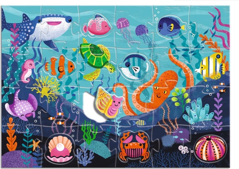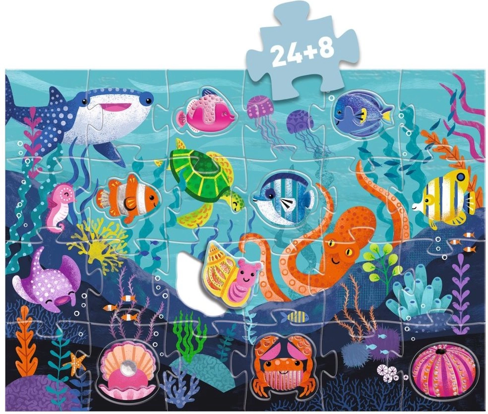 Atklājiet jautru un izglītojošu Djeco puzli mazajiem pētniekiem! Salieciet lielu jūras attēlu no 24 gabaliem un pēc tam papildiniet to ar 8 veidotiem gabaliņiem jūras dzīvnieku formās pareizajās vietās. Veicina sīko motoriku, loģisko domāšanu un dzīvnieku atpazīšanu. Ideāli bērniem no 3 gadiem.