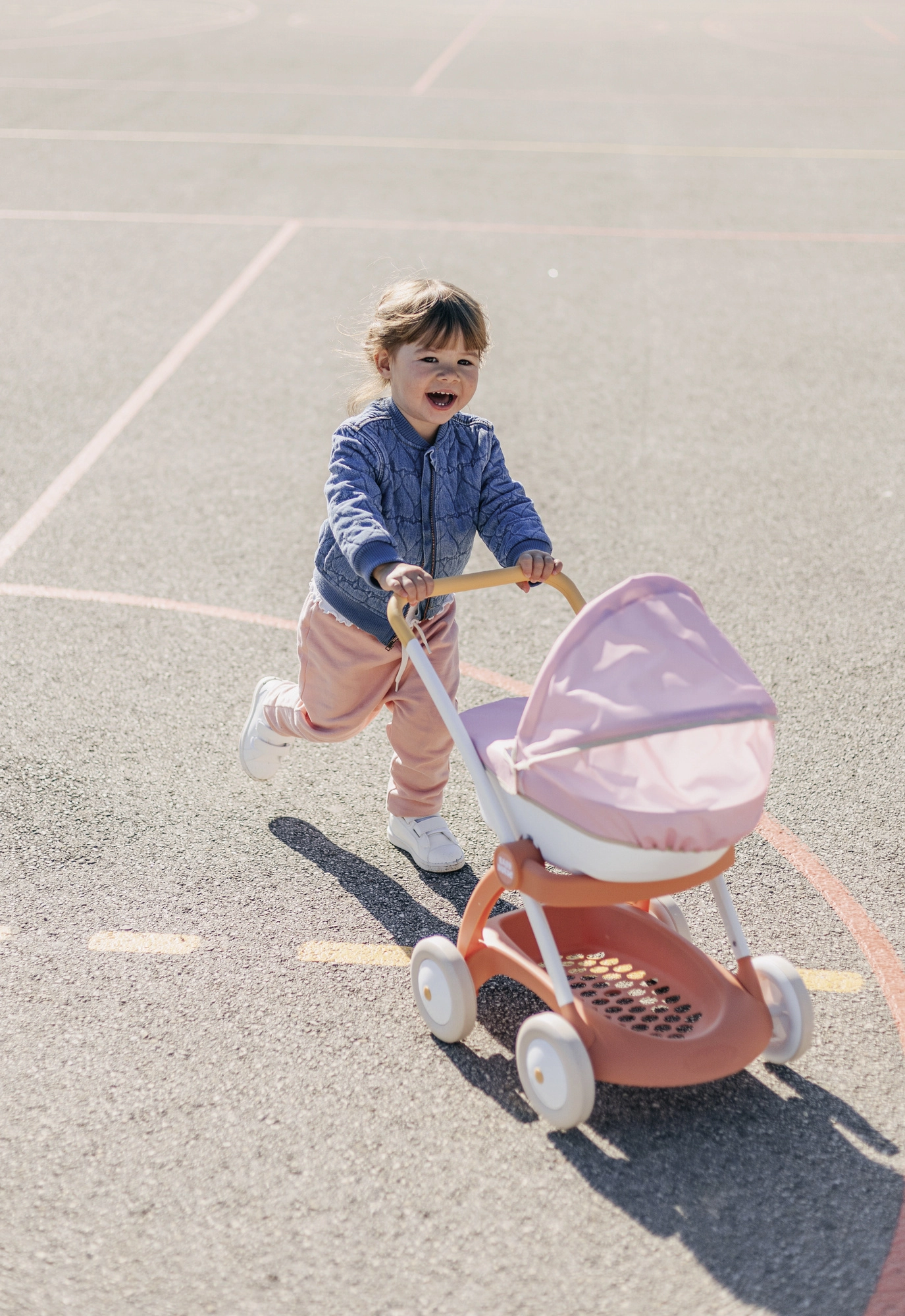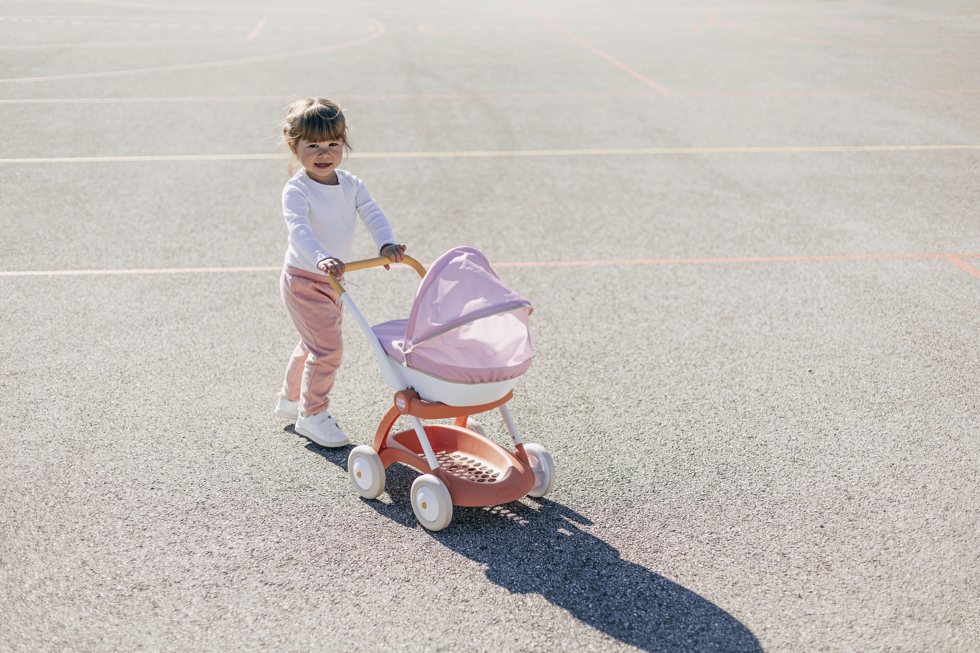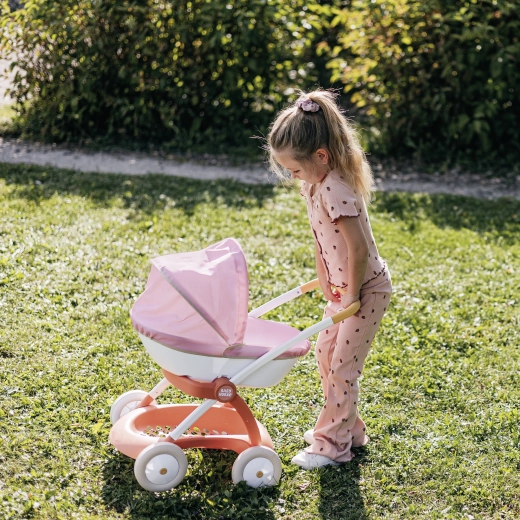 Praktiskā gondola ar plastmasas korpusu un nolokāmu jumtiņu pasargā lelli no saules un vēja. Tekstila pārvalks piešķir ratiņiem maigu izskatu, bet zem korpusa atradīsiet uzglabāšanas grozu aksesuāriem. Spēle ar ratiņiem veicina aprūpes prasmes, iztēli un nemanāmi attīsta motoriku.