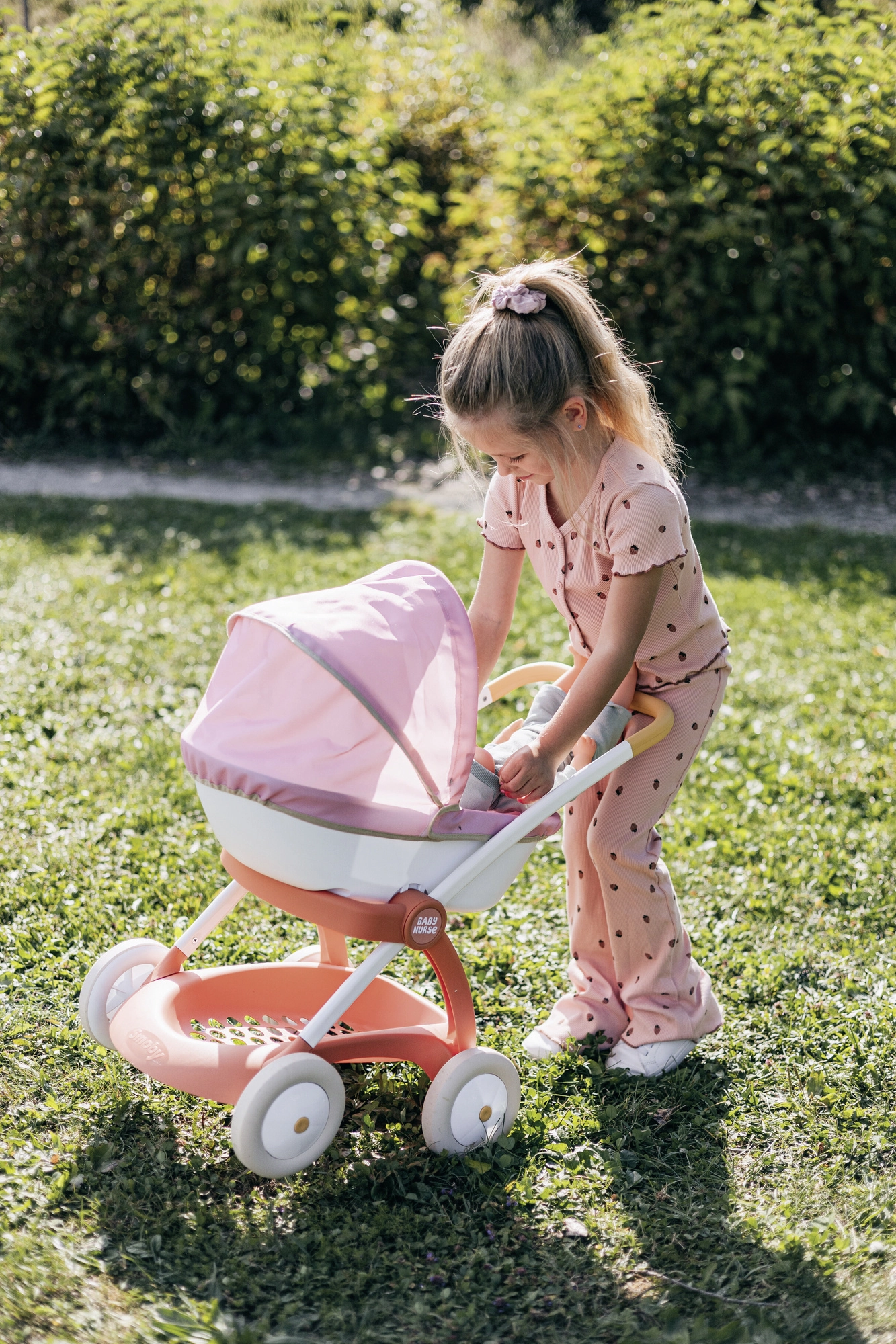 Stilīgi leļļu ratiņi no Baby Nurse sērijas ar zīmolu SMOBY iepriecinās ikvienu mazo gādīgo aprūpētāju. Tie piedāvā vieglu un stabilu šasiju ar metāla rāmi, klusus riteņus, ietilpīgu gondolu ar rozā pārvalku un uzglabāšanas plauktu sīklietām. Piemēroti lellēm līdz 42 cm un lieliski attīsta empātiju un lomu spēles.