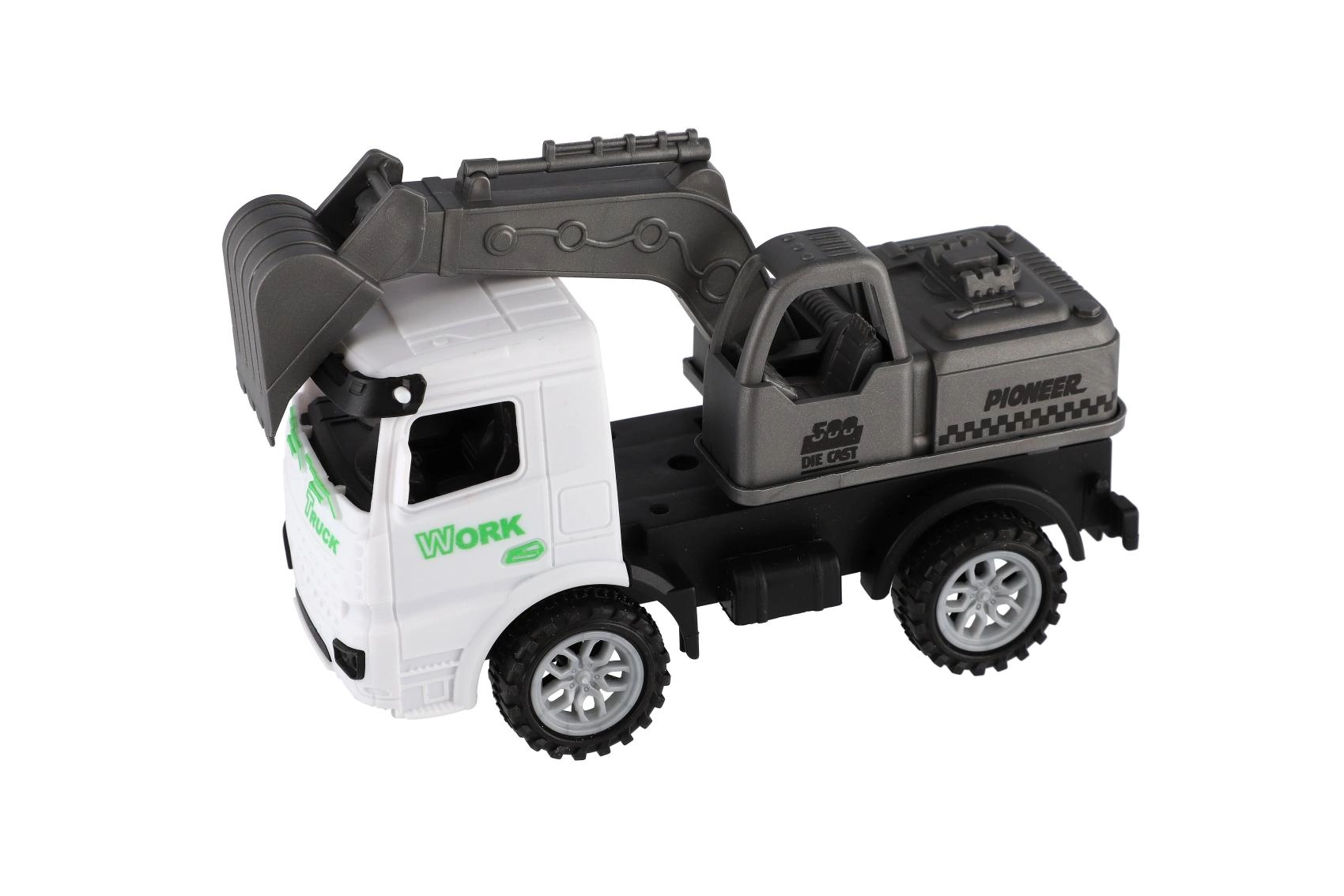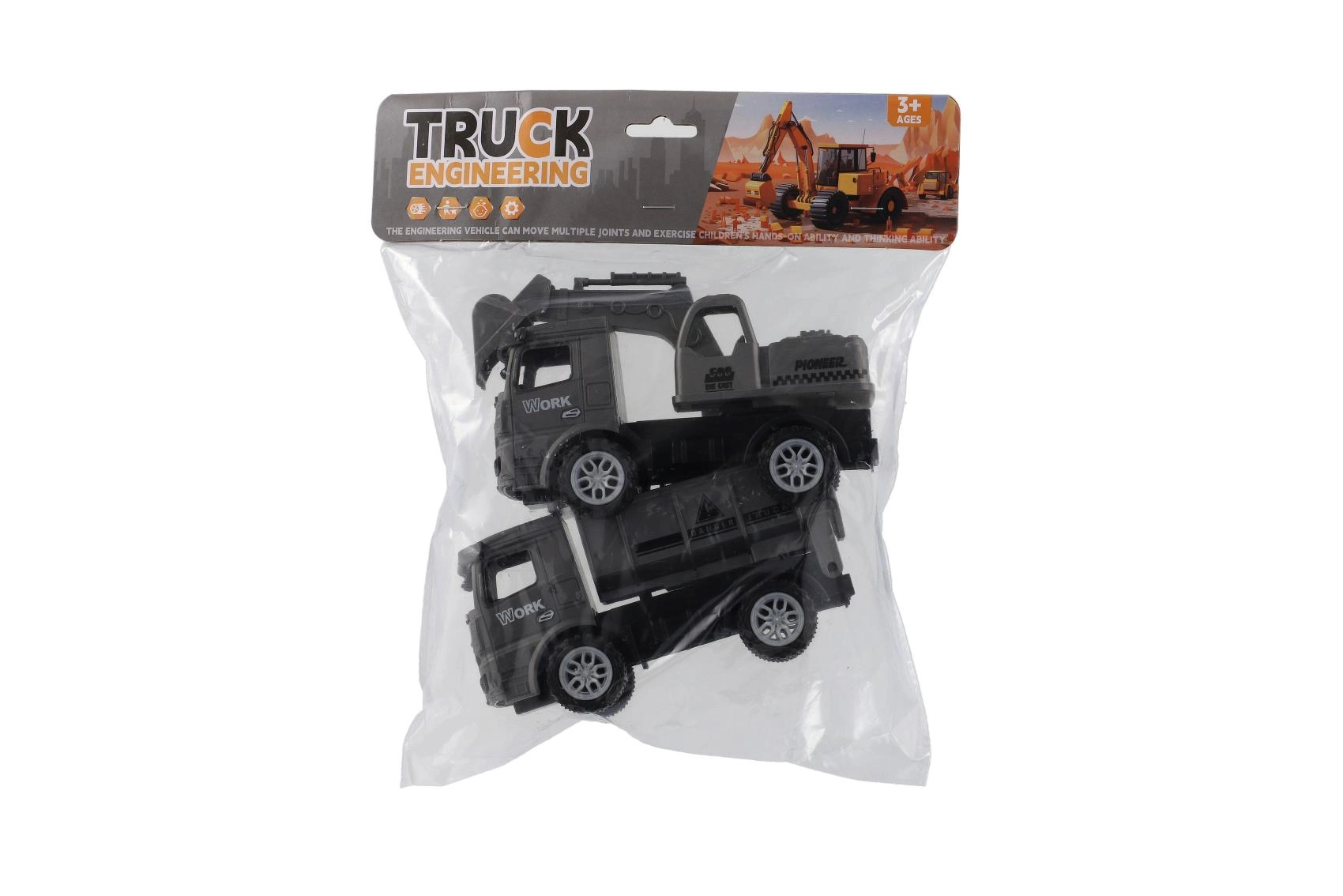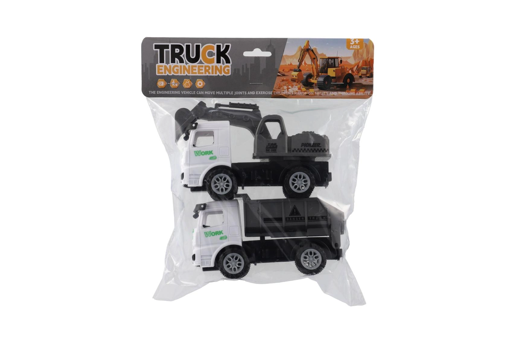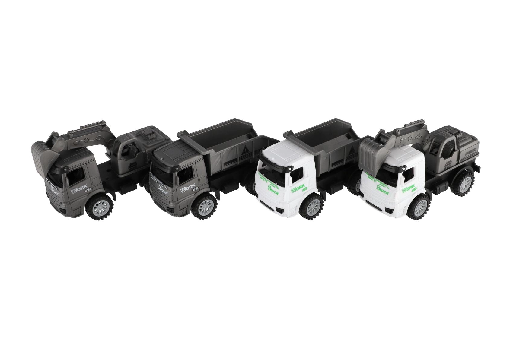 Šis lieliskais būvniecības mašīnu komplekts iepriecinās ikvienu mazo būvētāju. Komplektā ir 2 plastmasas transportlīdzekļi ar garumu 15 cm un inerces piedziņu – pietiek piebīdīt un atlaist, un mašīnas dosies uz priekšu.