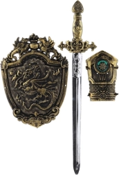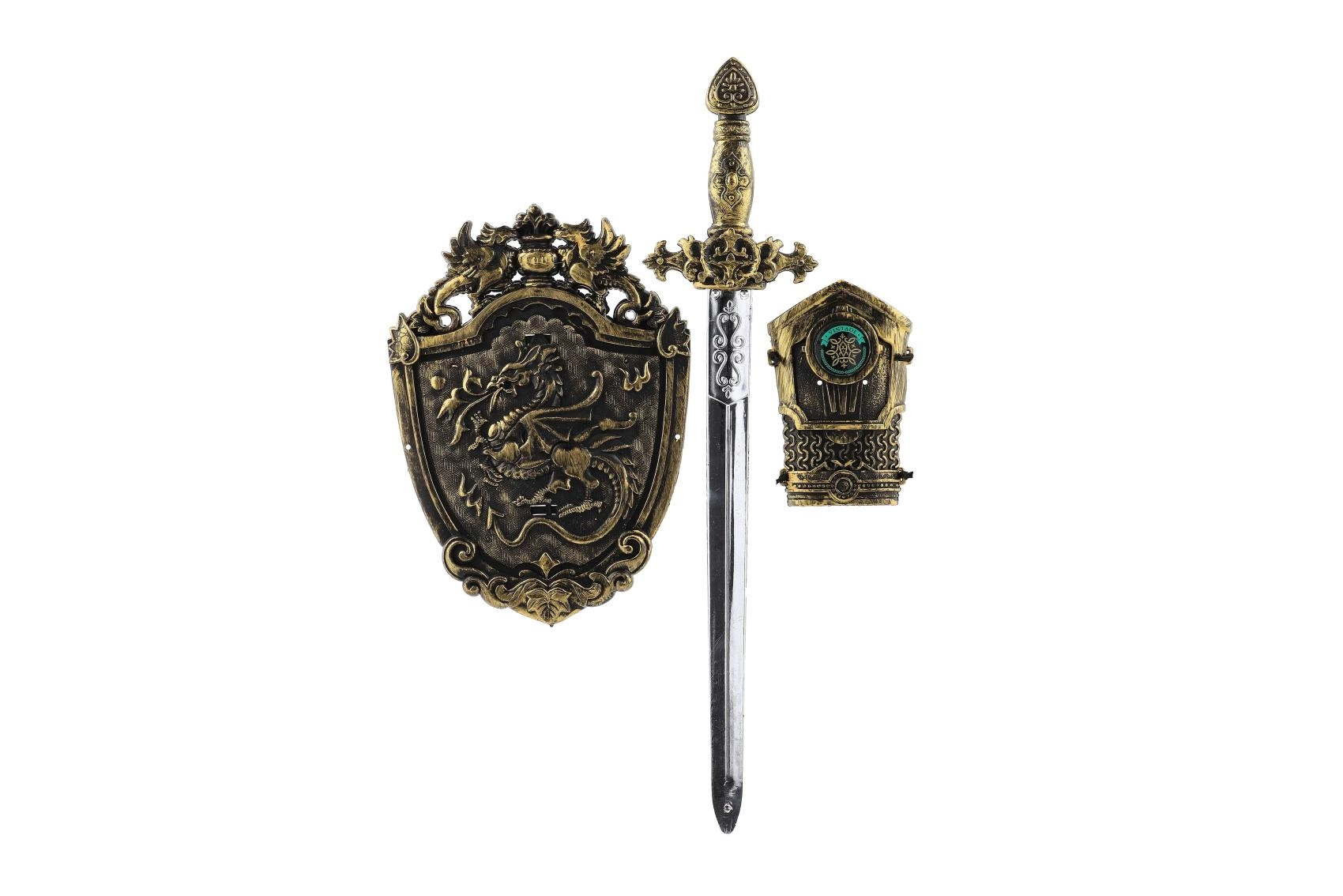 Kļūstiet par drošu bruņinieku ar šo lielisko bruņinieku komplektu, kas ietver plastmasas zobenu, roku aizsargu un vairog u – visu, kas nepieciešams piedzīvojumu rotaļām mājās vai dārzā.