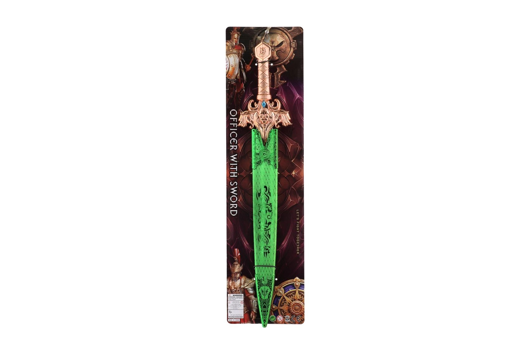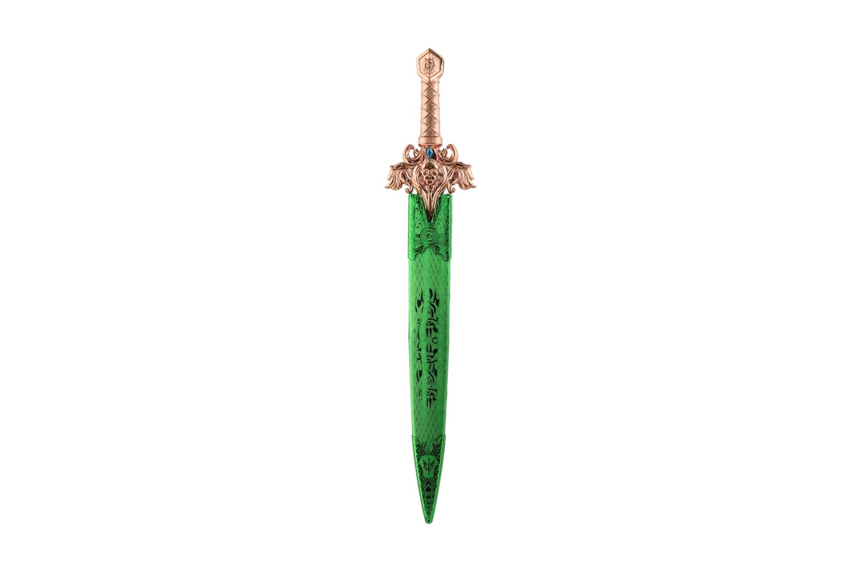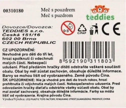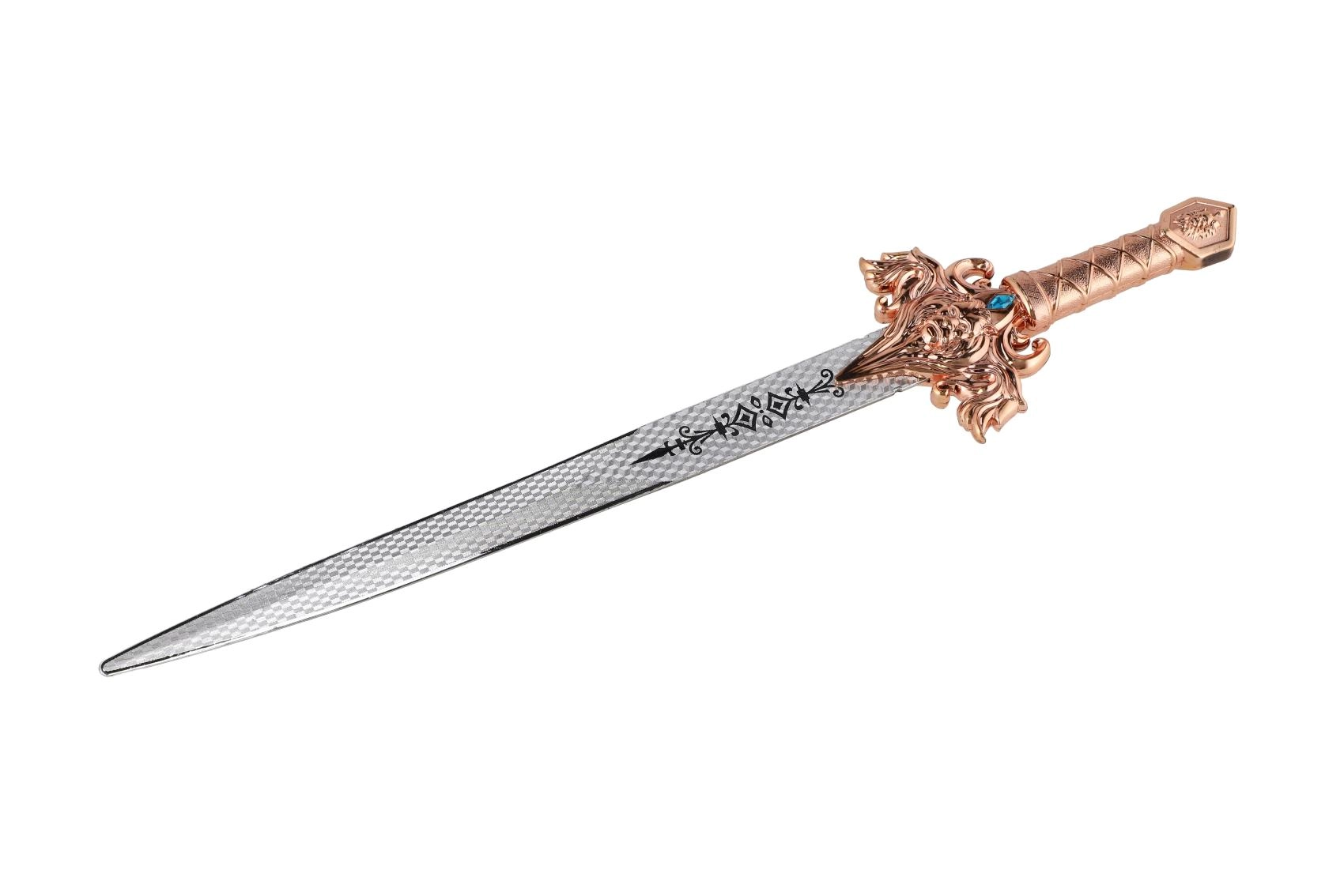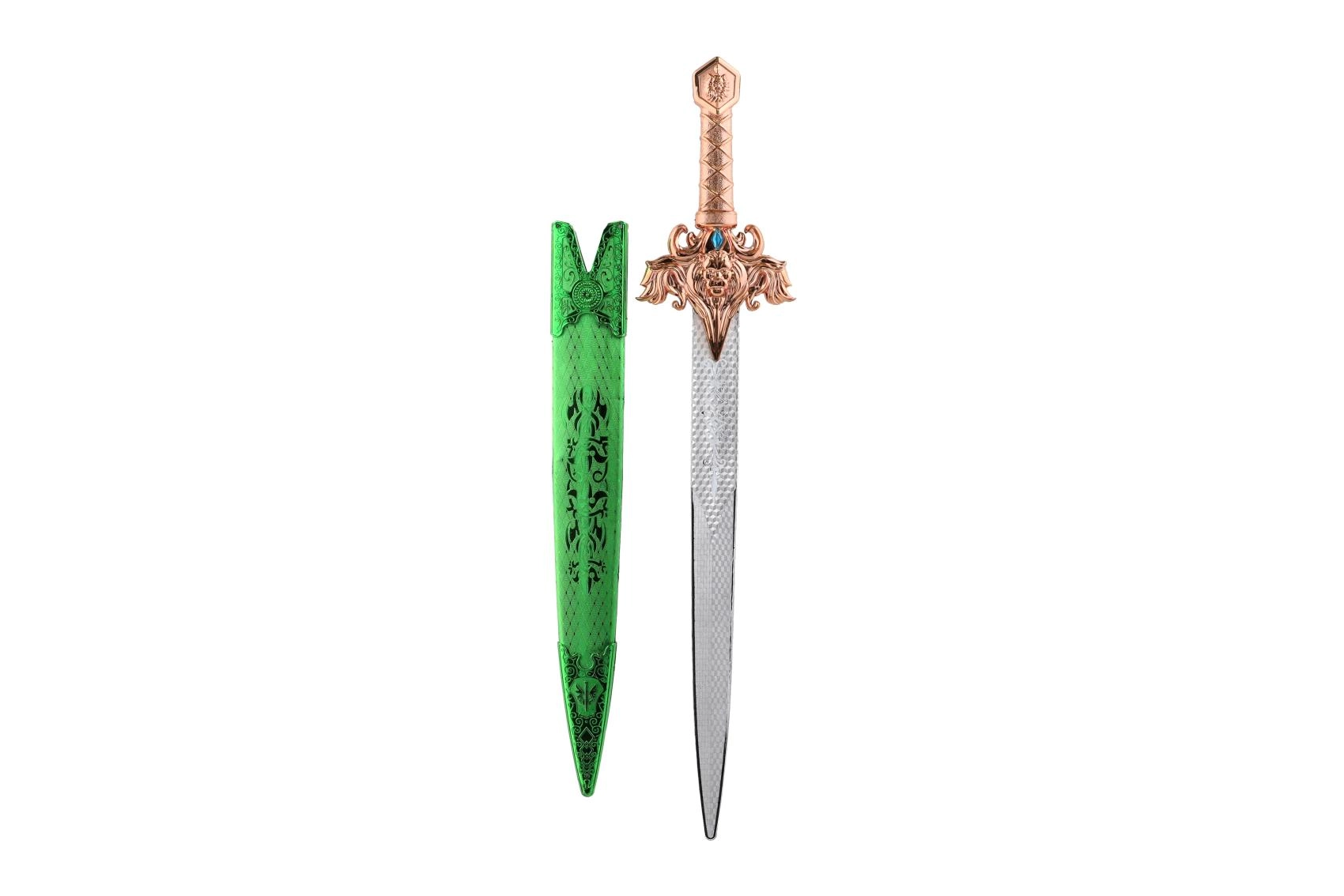 - Zobens ievietots greznā makstī, kas izceļ kopējo iespaidu un piešķir rotaļlietai autentiskumu.
