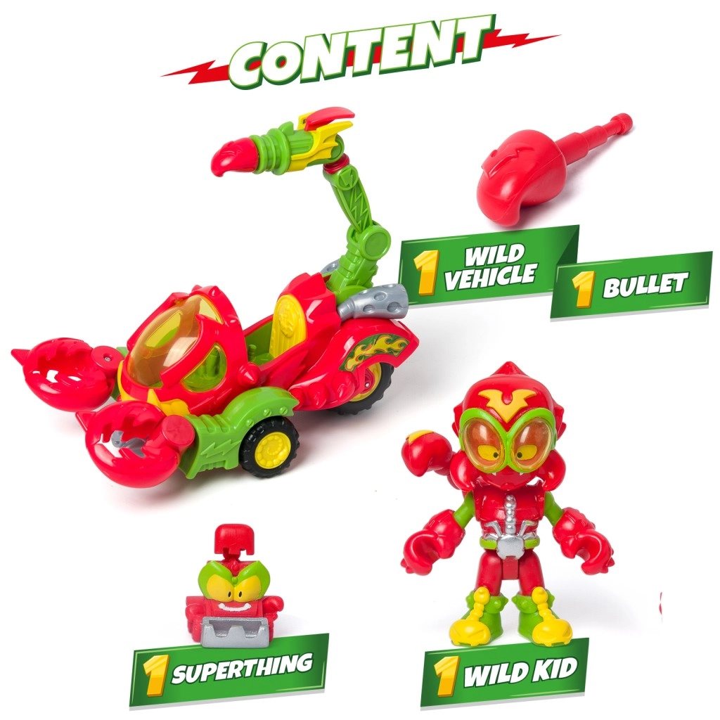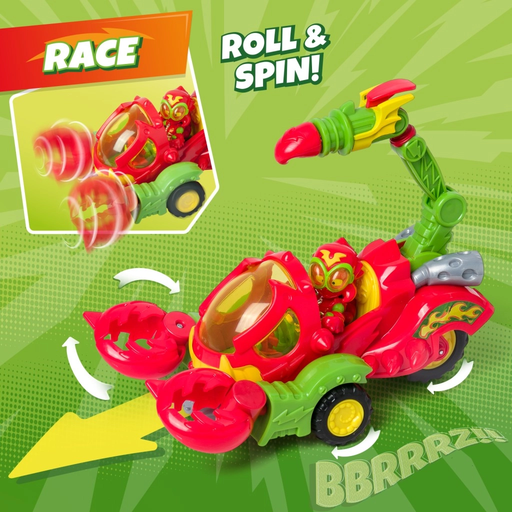 Atbrīvojiet skorpiona pilno spēku ar ekskluzīvo Kidu un SuperThing, kuri var apsēsties pie stūres. Skorpionam ir spīles, kas spēj sagūstīt pretiniekus, un kustoties tās griežas. Turklāt jūs varat izšaut varoņus ar tā spēcīgo dzēlienu.