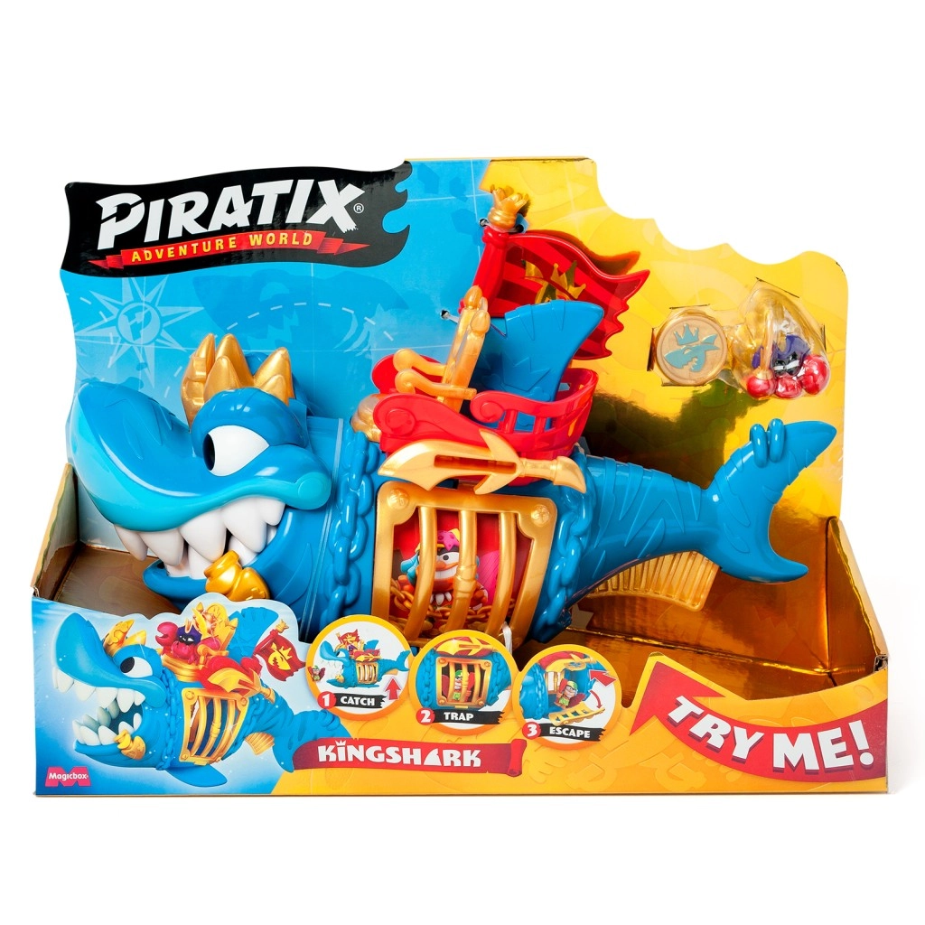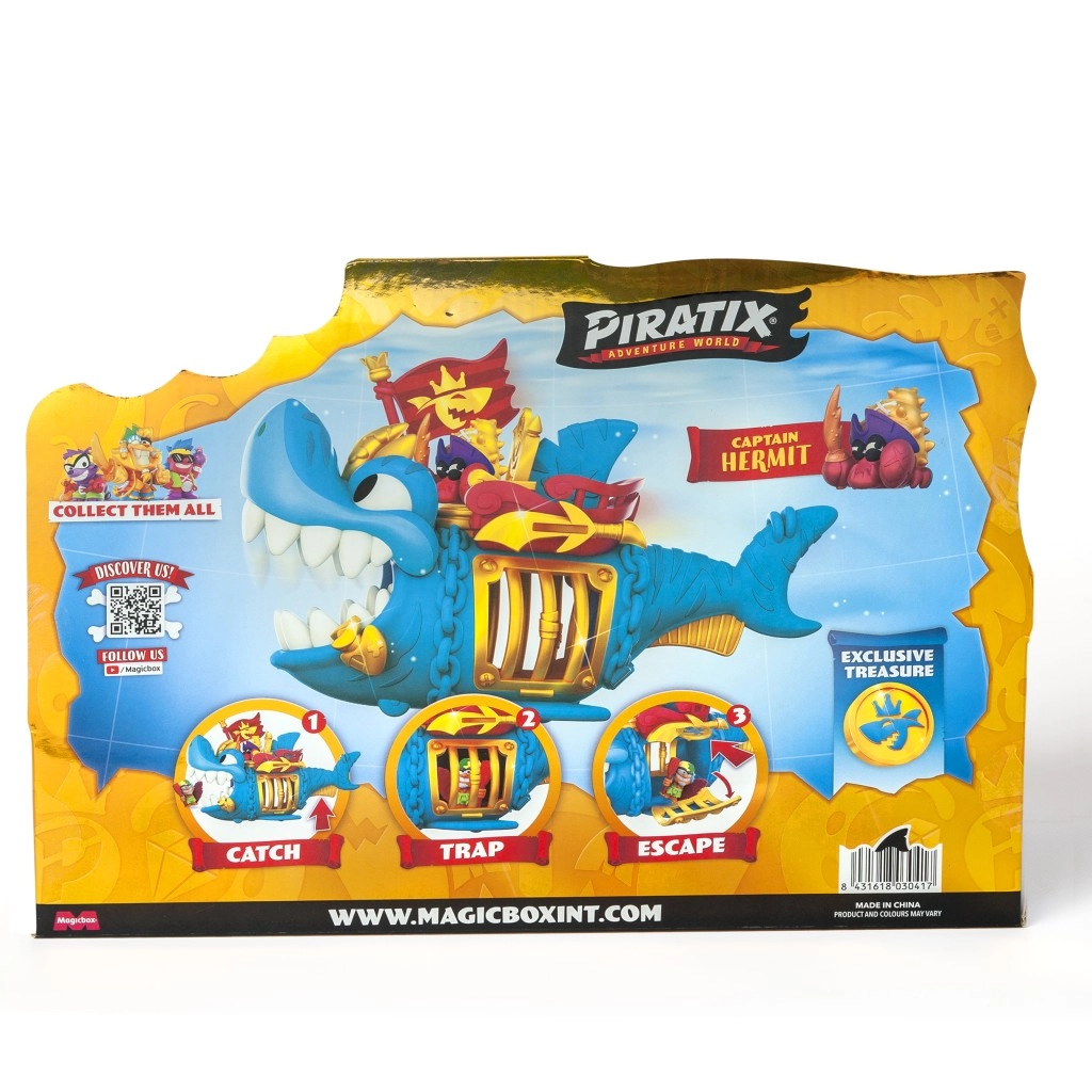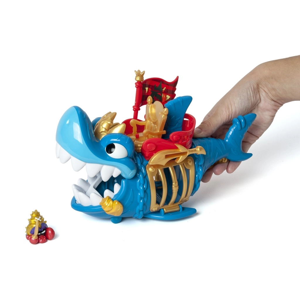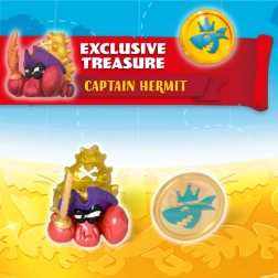 Atklājiet pirātu piedzīvojumu ar spēļu komplektu Haizivju Karalis un kapteini Hermitu. Izaiciniet ikvienu drosminieku uz cīņu fantāzijas pasaulē, kas pilna ar okeāna neapturamo spēku!