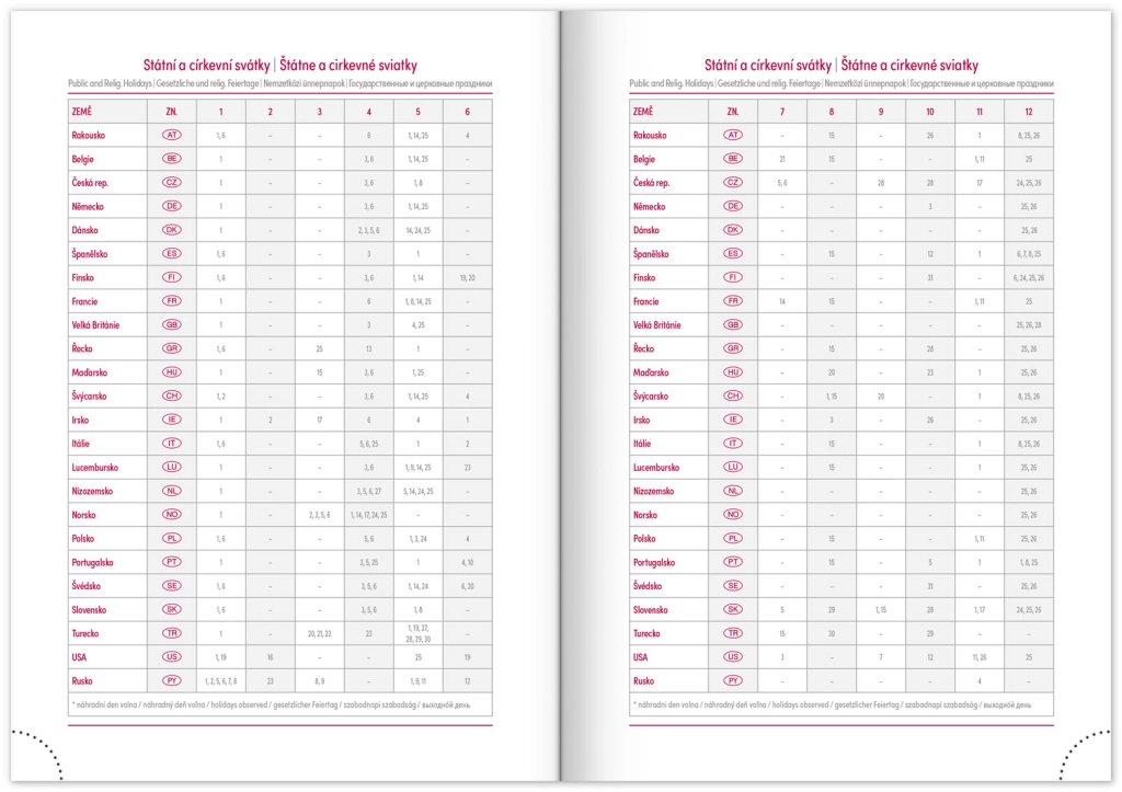 - Čehijas un Slovākijas svētki, ieskaitot starptautiskās dienas