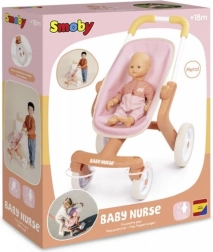Sporta ratiņi Smoby Baby Nurse lellēm ir viegli vadāmi, pateicoties 360° priekšējiem riteņiem un vieglajam plastmasas rāmim. Lieliski piemēroti visiem jūsu mazā piedzīvojumiem.