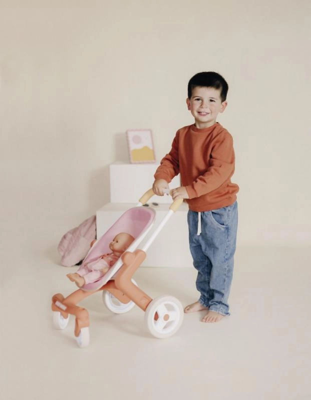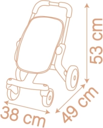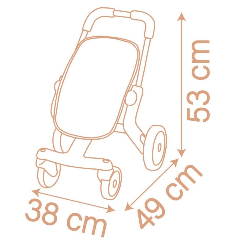 Šie ratiņi lellēm piedāvā ērtu stūrēšanu un manipulāciju, jo priekšējie riteņi griežas par 360 grādiem. Viegls un izturīgs plastmasas rāmis nodrošina ilgmūžību un vienkāršu lietošanu. Kopšana ir pavisam vienkārša: samitriniet sūklīti ar ūdeni un viegli notīriet ratiņus — ideāli, ja rotaļu laikā tie sasmērējas. Ratiņi paredzēti lellēm līdz 42 cm, taču lelles nav iekļautas komplektā.