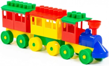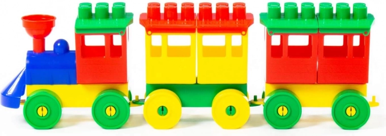 Krāsaina plastmasas vilcieniņa komplekts ir ideāls mazajiem bērniem no 3 gadu vecuma. Komplektā ir lokomotīve un divi vagoni, kas bērniem ļauj attīstīt radošumu un sīko motoriku.