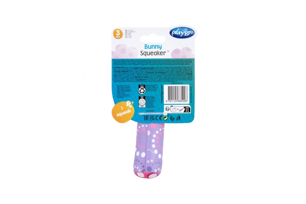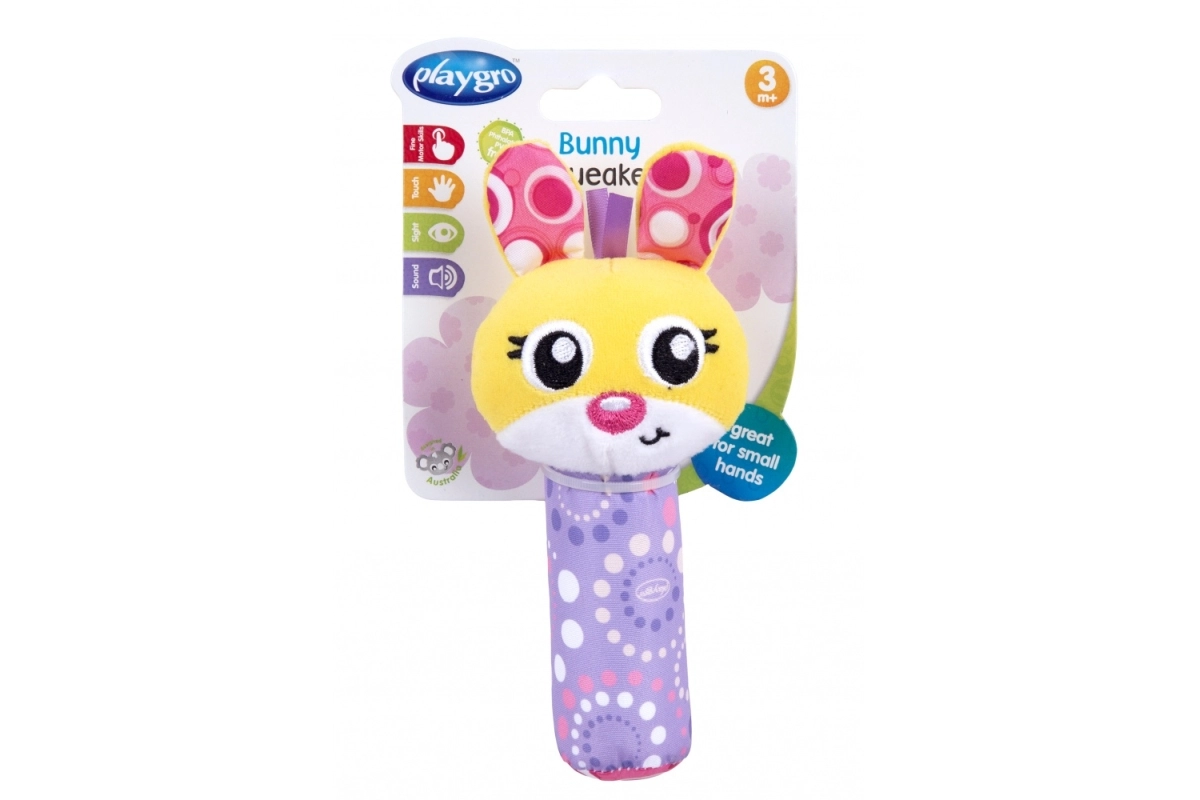 Atklājiet brīnumainas attīstības pasauli ar Playgro truša čīkstuli.