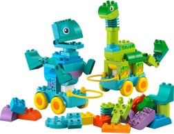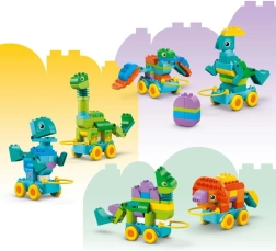 Šis komplekts nav tikai par būvēšanu, bet arī par rotaļīgu mācīšanos. LEGO DUPLO klucīši ir veidoti tā, lai ar tiem būtu viegli darboties, kas palīdz attīstīt pacietību un koncentrēšanos. Komplektā iekļauta arī pamatne ar riteņiem, pateicoties kurai dinozaurus var pārvērst par braucošiem modeļiem, nodrošinot vēl vairāk prieka visiem mazajiem LEGO DUPLO transportlīdzekļu cienītājiem.