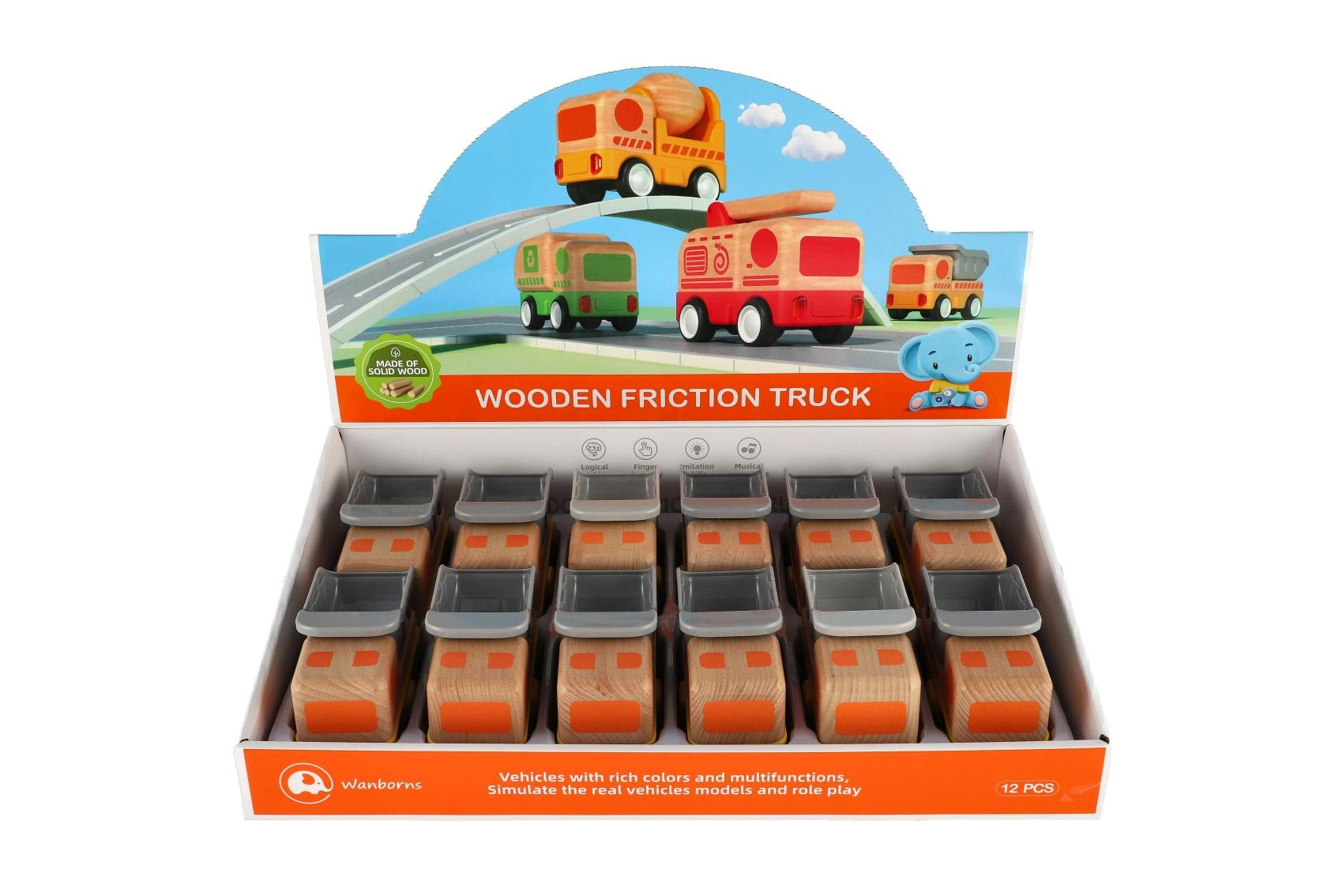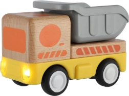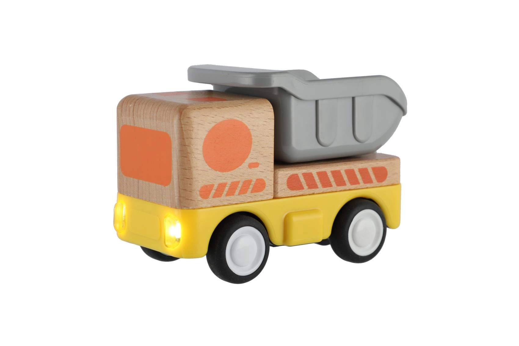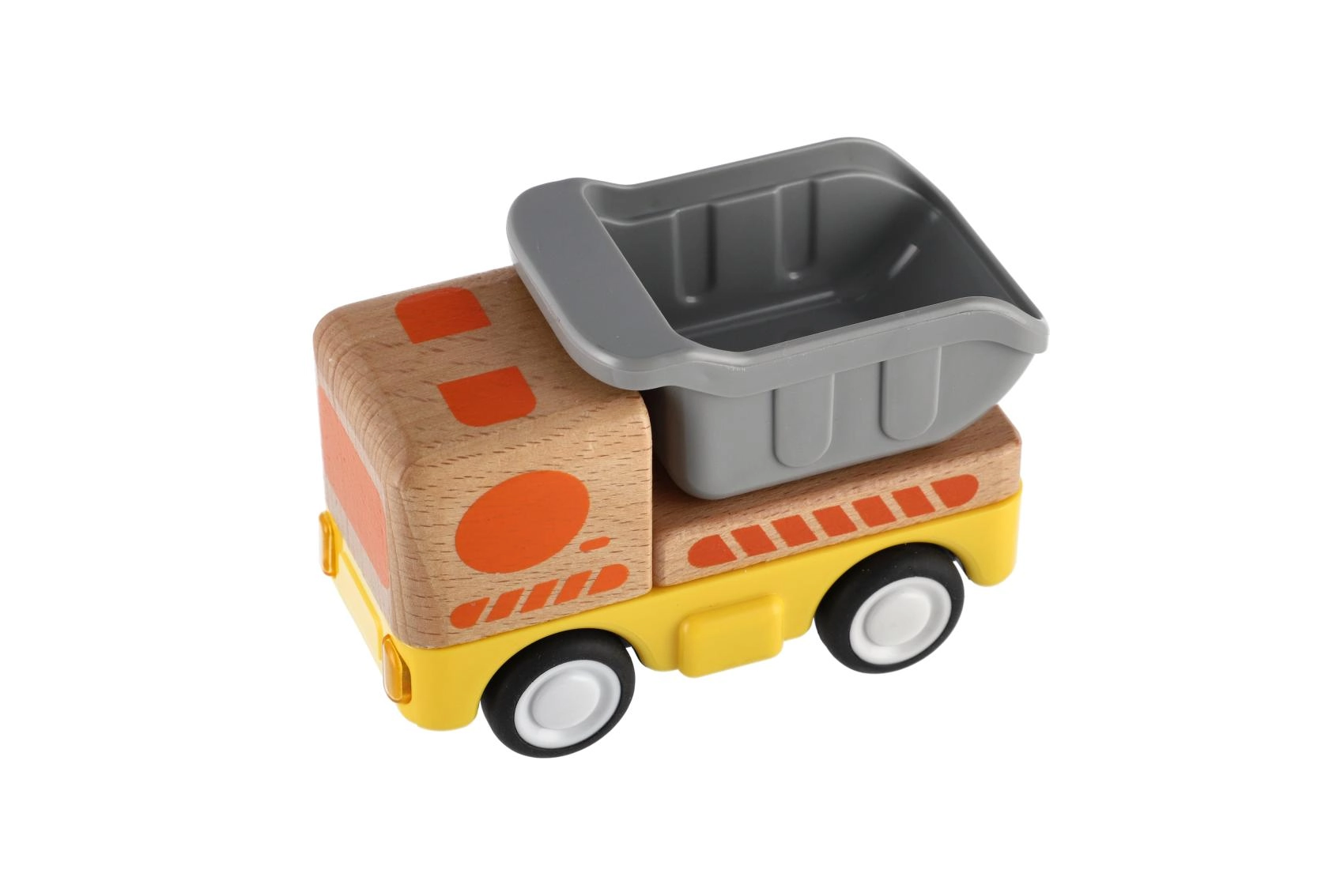 Robusts koka kravas auto ar inerciālo piedziņu, kas iepriecinās ikvienu mazo vadītāju! Inerciālā piedziņa ļauj viegli pastumt auto, kas pēc tam pats traucas uz priekšu. Ideāli piemērots mazām bērnu rociņām.
