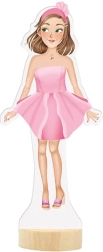 - Lelle, 30 magnētiskas detaļas (apģērbs, kurpes, aksesuāri), koka statīvs