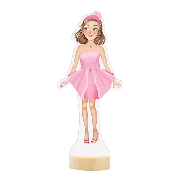 Šī magnētiskā lelle piedāvā stundām ilgu izklaidi un radošumu. Komplektā ir 30 apģērba gabali, kurpes un aksesuāri, kurus var viegli mainīt un kombinēt.