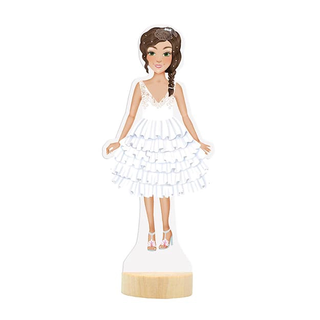 Magnētiskā lelle Kāzas ienes jautrību un radošumu bērnistabā. Ar šo lelli bērni var saģērbt varoni dažādos tērpos, izmantojot trīs loksnes ar magnētiskām apģērba daļām, apaviem un aksesuāriem.