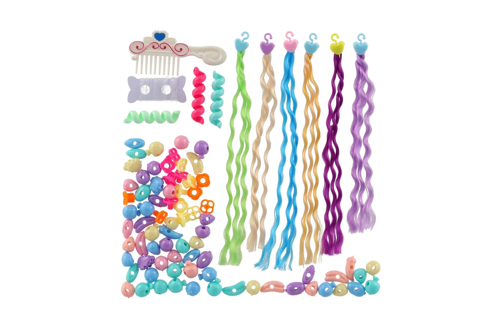 Izveidojiet oriģinālu frizūru ar šo krāsaino pērlīšu un bizišu komplektu, ideālu mazajām modes cienītājām, kuras vēlas skaistus matus.