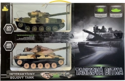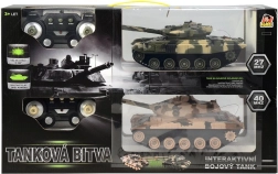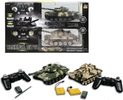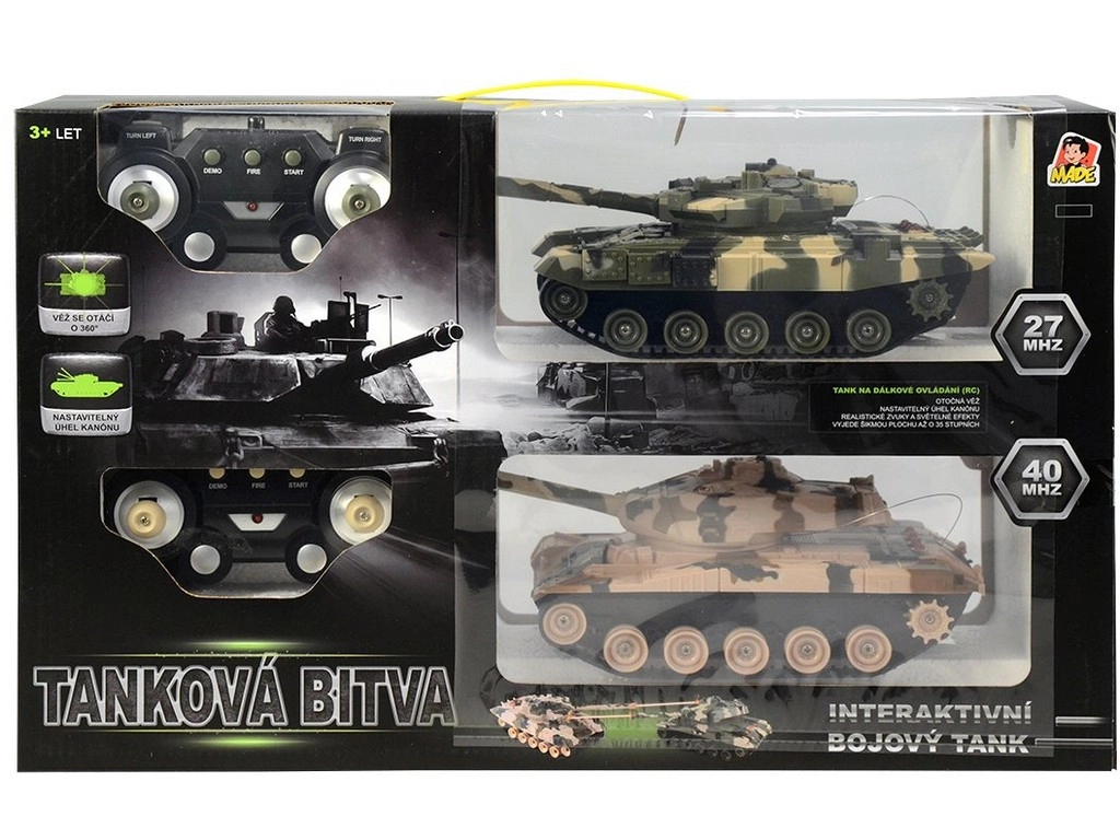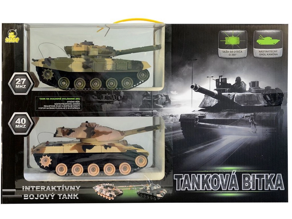 Šis tanku komplekts piedāvā bagātīgu interaktīvu izklaidi ar reālistiskām kaujas funkcijām. Frekvence 27/40 MHz nodrošina uzticamu vadību līdz pat 15 m attālumā. Katrs tanks ir aprīkots ar lielgabala stobriem ar infrasarkano diodi trāpījumu reģistrēšanai. Pultīs ir sprūda poga, kas nodrošina patiesu kaujas sajūtu. Trāpījuma brīdī atskan sprādziena skaņa, bet diodes uz tanka torņa atspoguļo “dzīvību” samazināšanos.