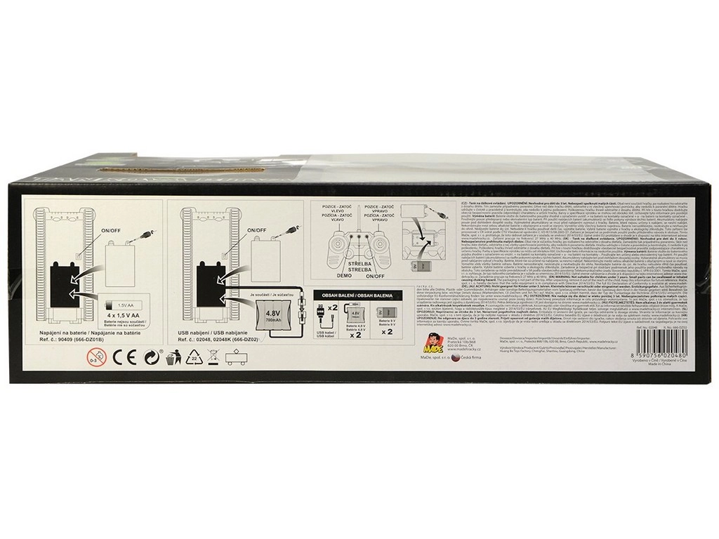 Spēle beidzas spēlētājam, kurš zaudē visas “dzīvības”. Pateicoties kompaktajam 27 cm garumam, tankus ir viegli vadīt arī mazākiem bērniem; ieteicams no 3 gadu vecuma. Iepakojumā iekļauts USB uzlādes kabelis ērtai bateriju uzlādei.