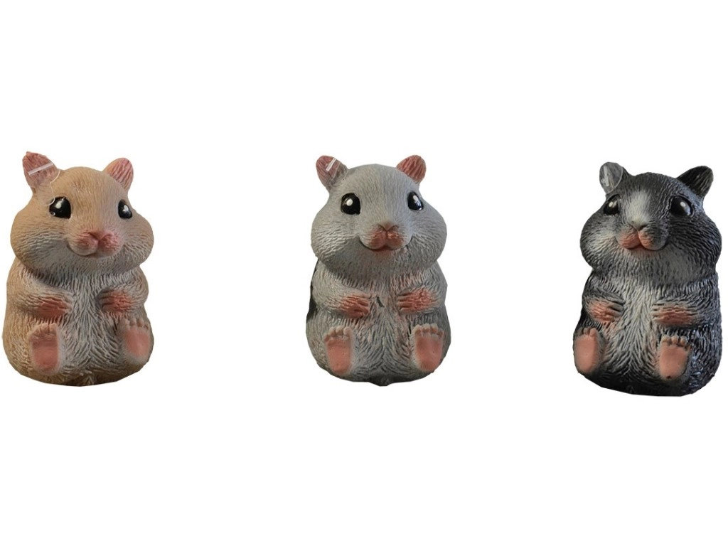 Droša un aizraujoša rotaļlieta mazajiem bērniem, gumijas kāmītis ir izgatavots no kvalitatīvas gumijas, kas nodrošina izturību un drošību. Pateicoties 8 cm izmēram, tas ir ideāli piemērots mazām rociņām un ir viegli pārnēsājams.