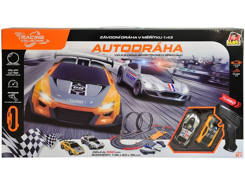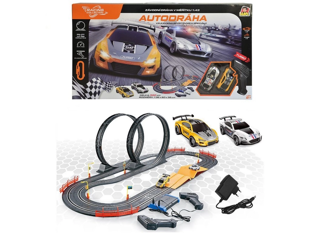 Sagatavojieties aizraujošām sacīkstēm ar autotrasi no Racing Collection sērijas. Šis komplekts ietver divas sacīkšu mašīnas un visu nepieciešamo dinamiskai braukšanai, tostarp divus vadības pultis, cilpas un tramplīnu. Pateicoties vienkāršai lietošanai un vieglai montāžai, tas ir ideāls izklaides veids visai ģimenei.