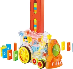 Šī oriģinālā caurspīdīgā lokomotīve ir lielisks veids, kā izklaidēt bērnus. Lokomotīve novieto domino kauliņus ar regulārām atstarpēm, kas nodrošina unikālu vizuālu pieredzi. Rotaļlieta atskaņo melodijas, kas vēl vairāk pastiprina izklaidi.