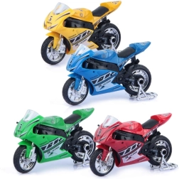 Metāla sacīkšu motocikls 11 cm izmērā ir lieliska rotaļlieta mazajiem sacīkšu braucējiem no 3 gadu vecuma. Izgatavots no kvalitatīva plastmasas materiāla, nodrošina ilgmūžību un drošību spēlējoties.