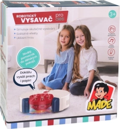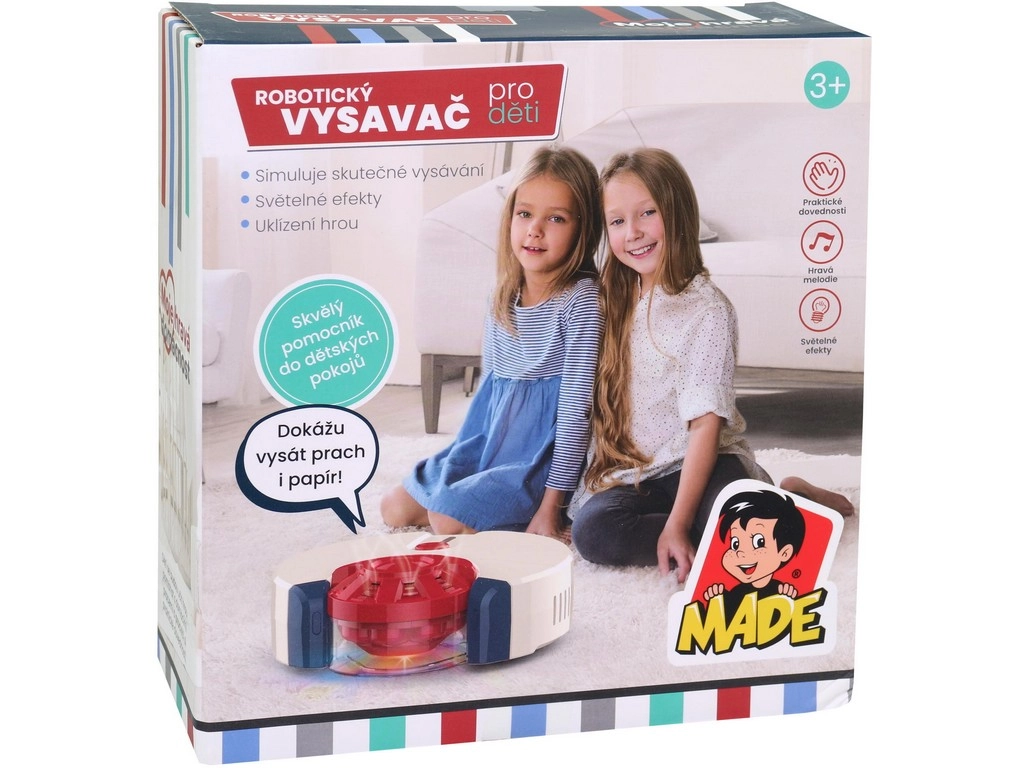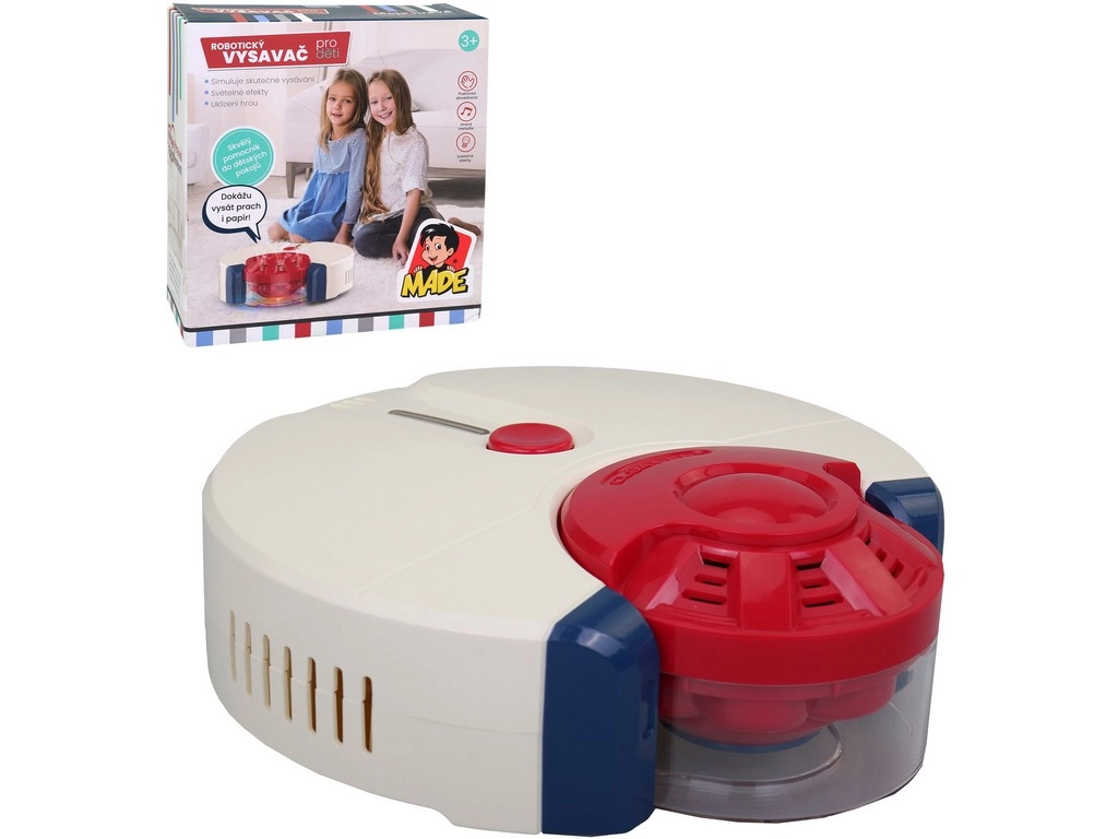 Šis robotiskais bērnu putekļsūcējs piedāvā mūsdienīgu putekļu sūknēšanas veidu mazajiem. Putekļsūcējs pārvietojas, spīd un rada reālistiskas skaņas, sniedzot prieku katrā spēlē.