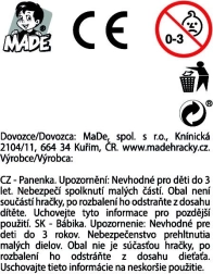Rotaļlietas izmēri ir 11 x 5 x 24 cm, kas ir ideāls lielums bērna rokām. Izgatavota no izturīga plastmasas materiāla, kas garantē ilgu kalpošanas laiku un noturību pret bojājumiem. Rotaļlieta ir iepakota displeja kastītē un galvenokārt paredzēta meitenēm, kuras var spēlēties ar reālistisku lellīti.